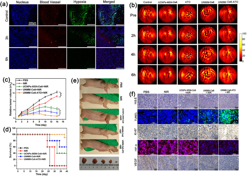 Titled ‘Inhibiting Tumour Oxygen Metabolism and Simultaneously Generating Oxygen by Intelligent Upconversion Nanotherapeutics for Enhanced Photodynamic Therapy’, the study was a collaboration between a team led by Associate Professor Yuan Zhen in UM’s Faculty of Health Sciences and Prof Qu Junle at Shenzhen University. Photodynamic therapy (PDT) is a noninvasive cancer treatment method with very few side effects. It is based on the interaction of three essential components: oxygen, photosensitisers, and visible light. Traditional PDT is usually only used to treat skin cancer because of the limited tissue penetration depth of ultraviolet light or white light used in the therapy, which makes it difficult for PDT to perform tumour treatment in deep tissues. Specifically, there are three main challenges: inaccurate tumour positioning in deep tissues, limited excitation light penetration depth, and significant hypoxia in deep tumours.