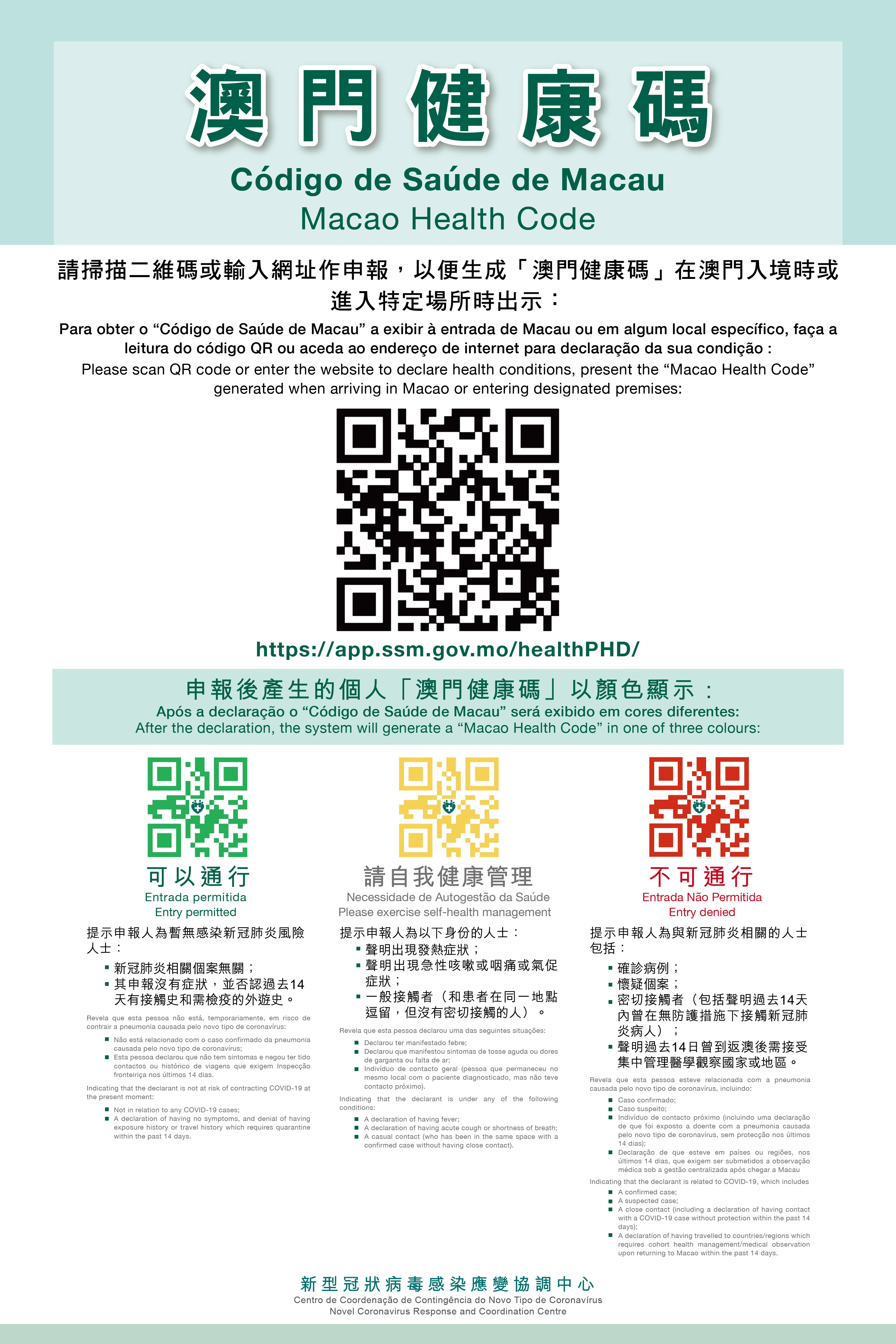 3) They must hold a valid green-code certificate relating to a health-status declaration under Macao’s health reporting system.