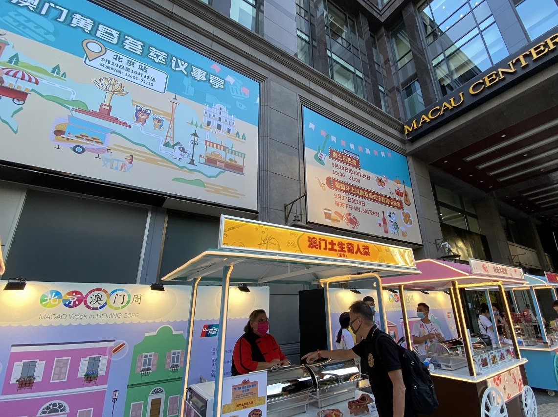 The “Beijing Macao Week” will be unveiled at Wangfujing in Beijing on 26 September. As one of the event’s major highlights, an Outdoor Café themed as “Gathering at Dusk in Senado Square – in Beijing” opened on 19 September to serve guests with Macao’s signature delicacies at the Northern Plaza of Macau Center in Beijing. Between 4 p.m. and 9:30 p.m. from the day until 25 October, Beijing residents and visitors are welcome to visit the Outdoor Café for a taste of the diverse culinary culture embraced by Macao as a Creative City of Gastronomy.