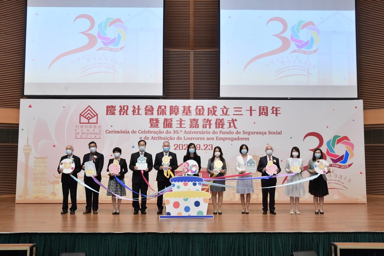 “Celebrating the 30th Anniversary of the Establishment of Social Security Fund and Employer Recognition Ceremony” was held at the conference hall of the Science Museum at 3:30 p.m. on 23rd September. The officiating guests were the Secretary for Social Affairs and Culture, Ao Ieong U, and Deputy Secretary-General of the Liaison Office of the Central People’s Government Liaison Office in the Macao Special Administrative Region and Head of Department of Social Work, Huang Huagai, the Chief of Office of the Secretary for Social Affairs and Culture, Ho Ioc San, and President of Social Security Fund’s Administrative Committee, Iong Kong Io.