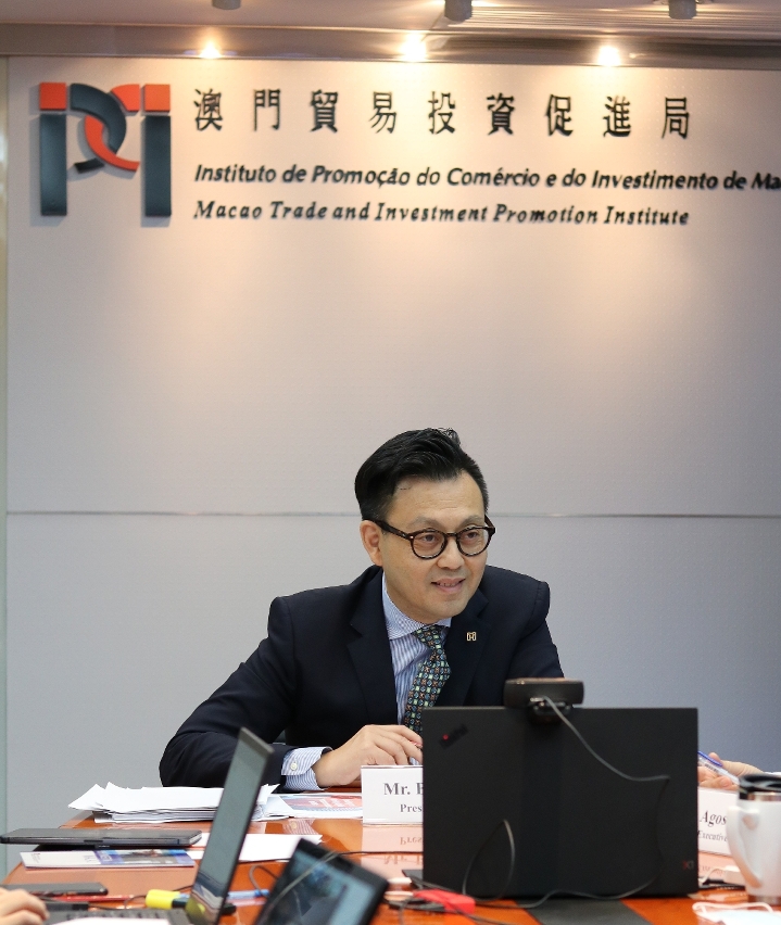 Two meetings were held, one on how trade and investment promotion organisations could be innovative when affected by the pandemic, and the other on how to improve small and medium-sized enterprises’ competitiveness. IPIM’s Executive Director Agostinho Vong Vai Lon introduced IPIM’s services that support businesses, and shared experiences of hosting online activities when the city was hit by the epidemic, and presented some of the achievements of these events.
