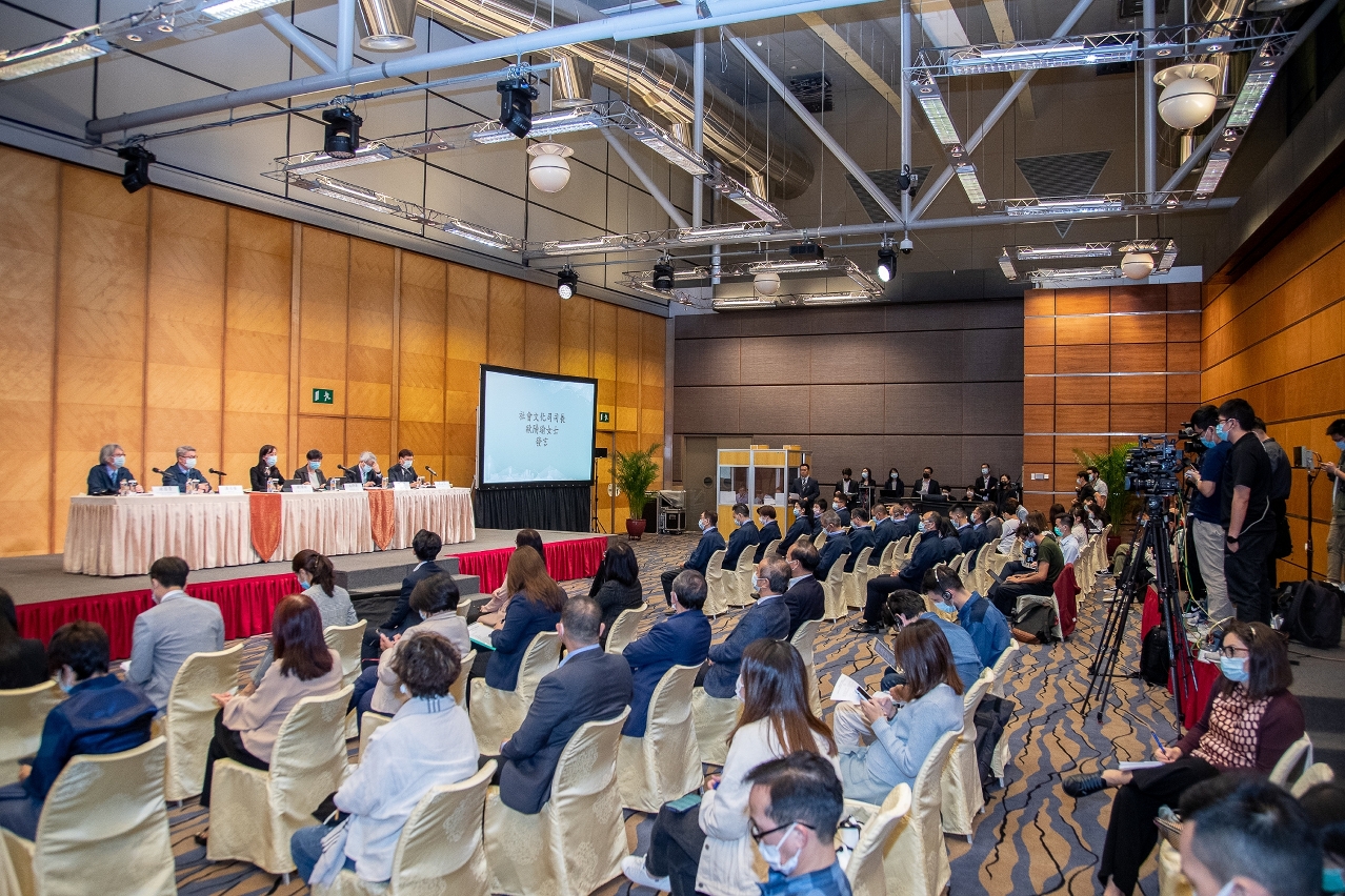 The press conference for the “Tour Macao Carnival” was held at the Macau Tower Convention and Entertainment Centre today (4 November). Secretary for Social Affairs and Culture of the Macao SAR Government, Ao Ieong U, delivered remarks at the press conference, followed by Director of Macao Government Tourism Office (MGTO), Maria Helena de Senna Fernandes, President of Sports Bureau and Coordinator of the Macau Grand Prix Organizing Committee, Pun Weng Kun, Director of Health Bureau, Lei Chin Ion, and Coordinator of the Sporting Subcommittee of Macau Grand Prix Organizing Committee, Chong Coc Veng, who took turns to introduce the tourism events, the program of Macau Grand Prix and technical information of the motor races, as well as information about pandemic prevention respectively. Chairman of the United Association of Food and Beverage Merchants of Macao, Kenneth Lei, also unveiled more information about the Macau Food Festival, one of the major highlights in November.