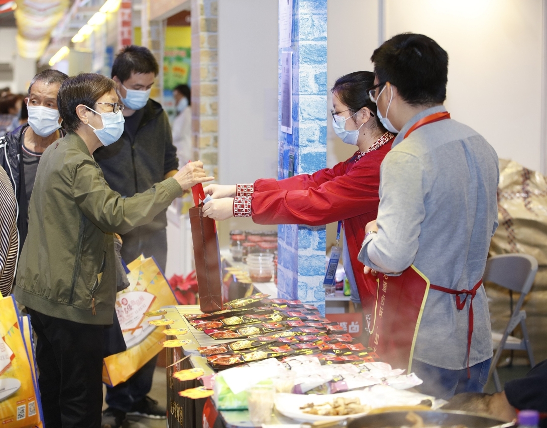 This year’s GMBPF went under the theme of “Guangdong-Macao Cuisine Channel” and offered a “Guangdong- Macao Cuisine Channel Exhibition Area”. This year, a wall decorated with giant fresh fruits and the “Guangdong and Macao Super Monopoly” were set up at the venue for people to take photo with and “check in”. The Grand Stage offered a diverse array of singing and dancing performances, magic shows, interactive games and commodity promotion sessions, to enliven the atmosphere. Ms Tam, a local resident who visits the Fair every year, said that this year’s exhibits were diversified, and that the food products were especially attractive. Ms Jiang, a tourist from Zhuhai, said that it was her first time visiting the Fair and that she was confident about the epidemic prevention measures in Macao. She said that the products in the Fair were diversified, and she spent more than MOP2,000.