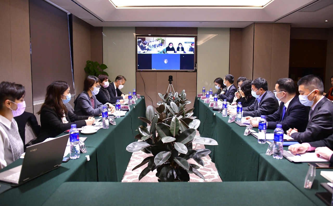 In order to effectively implement the requirements of the "Greater Bay Guangdong-Hong Kong-Macao Development Planning Guidelines" regarding the improvement of the cross-border mechanism for exchanging information on combating money laundering and terrorist financing, GIF periodically meets with the financial intelligence units (FIUs) of Mainland China and Hong Kong SAR, namely the China Anti-Money Laundering Monitoring and Analysis Center (CAMLMAC) of the People's Bank of China (PBOC) and the Hong Kong Joint Financial Intelligence Unit (HKJFIU). To further strengthen the cross-border exchange and cooperation between FIUs of Mainland China, Hong Kong SAR and Macao SAR in the fight against money laundering, the Director of GIF, Ms. Chu Un I, Deputy Director, Ms. Fong Iun Kei, Functional Chiefs Ms. Chan Ka Sin and Ms. Vong Man Ieng, went to Zhuhai on 23rd December 2020 to join with representatives of CAMLMAC to attend an online meeting with HKJFIU.