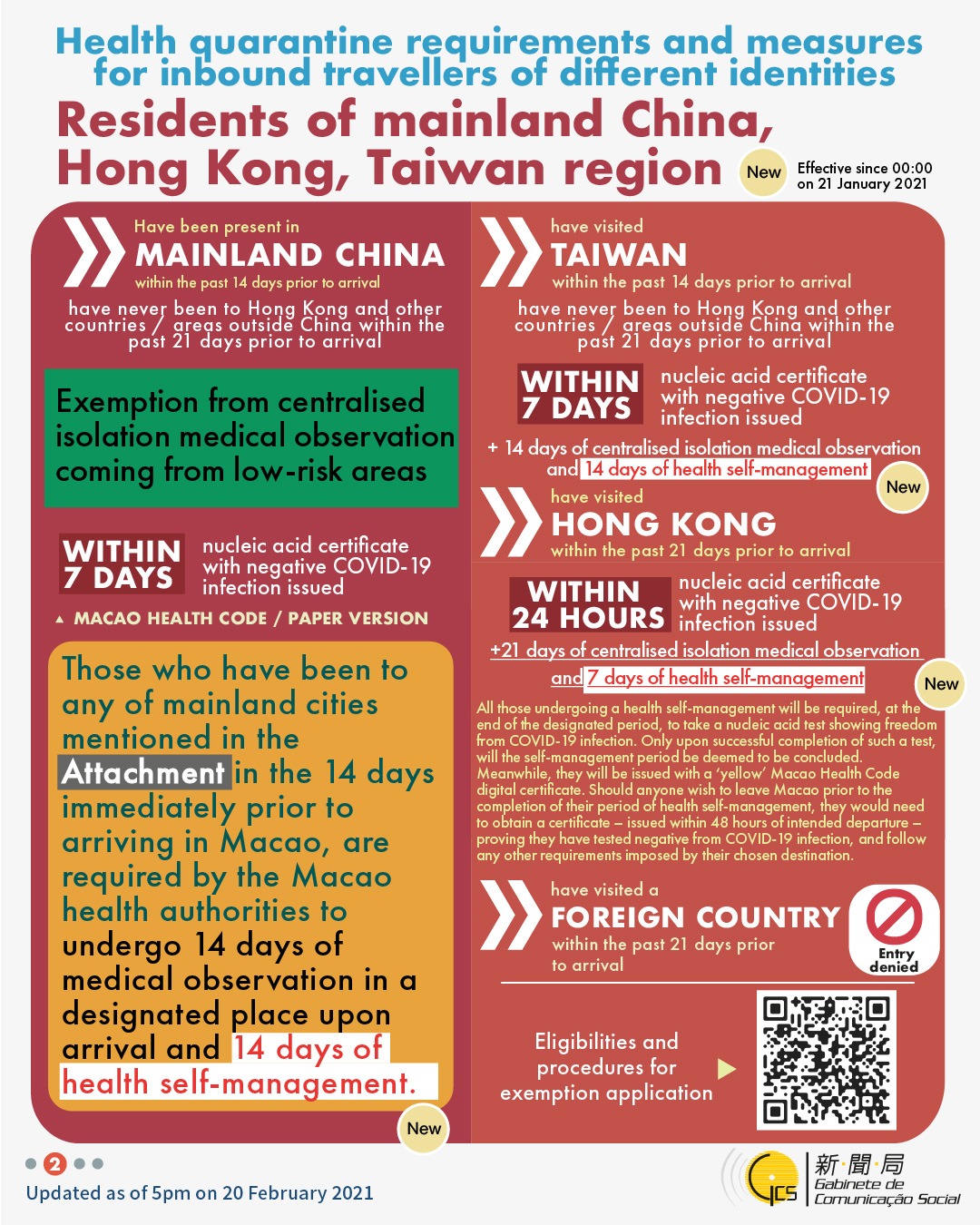 [infographic] 20 February 2021 health quarantine requirements and measures for inbound travellers