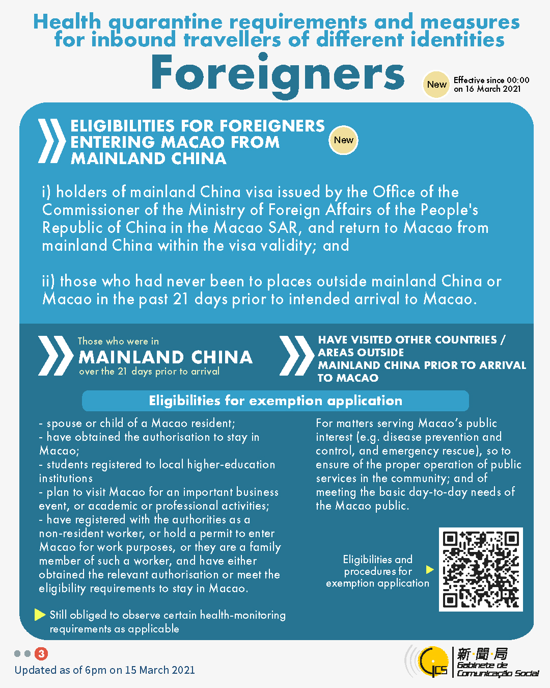 To get the latest official news, please subscribe the Government Information Bureau’s Telegram News Channel at https://t.me/macaogcsEN.