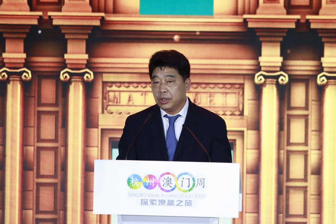 Deputy Mayor of Hangzhou Municipal People’s Government, Ke Jixin, remarked that he led a delegation of Hangzhou Municipal People’s Government to visit Macao in late 2020. The Macao SAR Government not only achieved remarkable results with its effective measures of pandemic control and prevention but also kept pushing forward electronic and primary-level governance in addition to the steady development of state key laboratories and technology innovation, all of which made a strong impression upon him during the visit. Pertinent government entities of both sides also led an in-depth discussion on ways to advance exchange and cooperation in various fields. The Macao Week in Hangzhou now deepens and carries on the significance of the visit. It is also a major fruition of the reinstatement of travel permit issuance for Mainland visitors to Macao.
