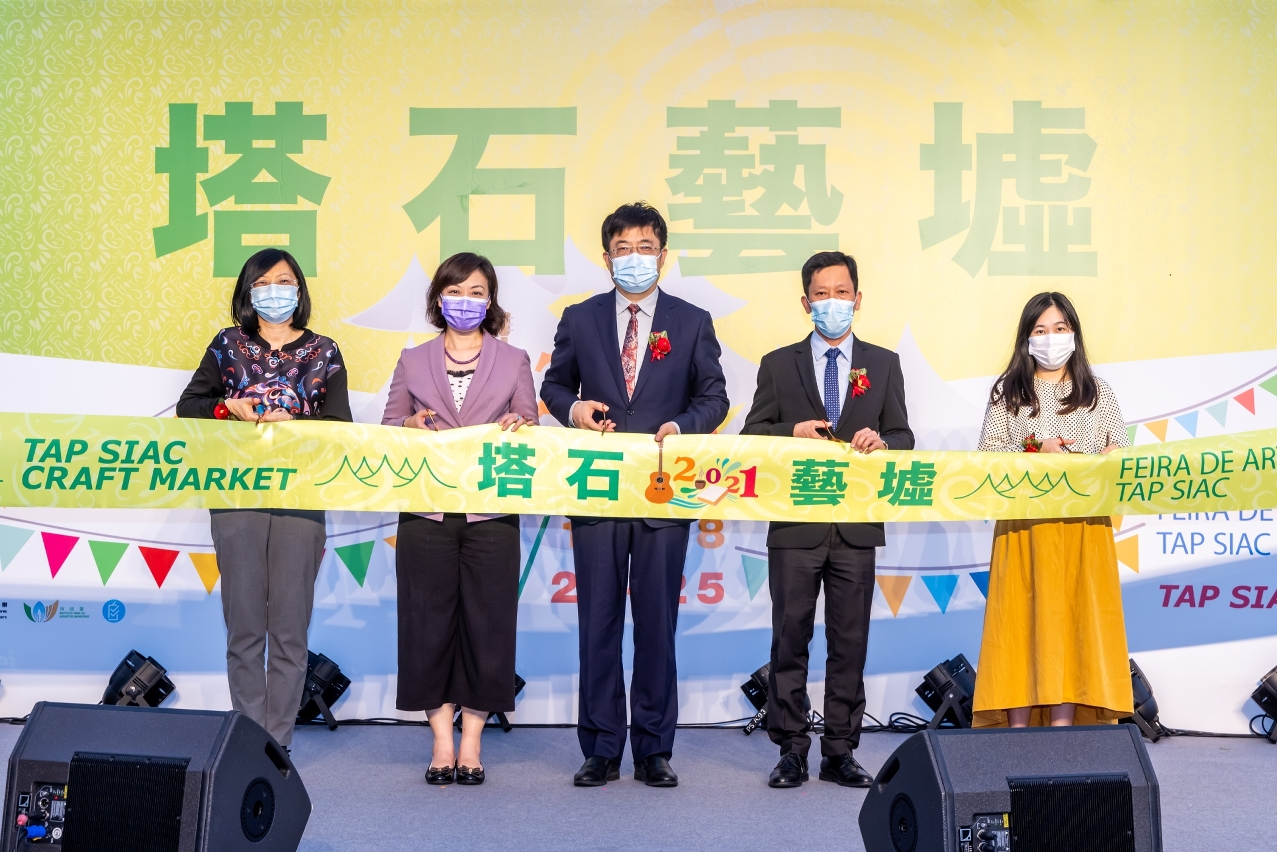 The Tap Siac Craft Market opening ceremony was held at 5:30pm on 16 April at Tap Siac Square and was officiated by the Director of the Department of Publicity and Culture of the Liaison Office of the Central People’s Government in the Macao SAR, Wan Sucheng; the President of the Cultural Affairs Bureau, Mok Ian Ian; the Member of the Administration Committee on Municipal Affairs of the Municipal Affairs Bureau, Lam Sio Un; the Member of the Administrative Committee of the Cultural Industries Fund, Chu Miu Lai; and the Project Manager of Go! Freelancers from Guangzhou, Sarah Nie.
