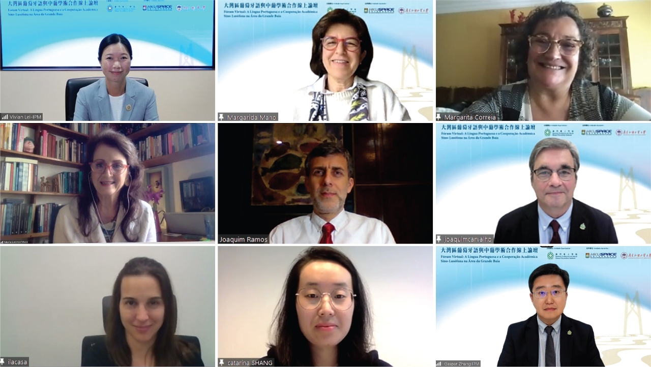 Lei Ngan Lin, the Vice President of Macao Polytechnic Institute, pointed out in her welcome speech that the construction of the Guangdong-Hong Kong-Macao Greater Bay Area has brought new historical opportunities to deepen Sino-Portuguese academic cooperation. Universities in Guangdong, Hong Kong and Macao have joined hands to actively connect with the Lusophone countries with Portuguese as a link. The academic network contributes to the prosperity of the Sino-Portuguese academic ecosystem. The speakers in the online Forum included: Margarida Mano, the Chair of the Management Forum of Higher Education in Portuguese Speaking Countries and Territories and also the Vice President of the Catholic University of Portugal; Margarita Correia, the Chair of the Academic Committee of the International Portuguese Language Institute; Maria Maia, the Chair of the Brazilian Association for International Education; Joaquim Ramos, the Director of the Portuguese Oriental Institute of Macau; Joaquim Carvalho, the Director of the International Portuguese Training Centre of the Macao Polytechnic Institute; Irene Lacasa, the Program Director of English and European Language of the School of Professional and Continuing Education of The University of Hong Kong; Shang Xuejiao, the Dean of the Portuguese Language Department of Guangdong University of Foreign Studies; and Zhang Yunfeng, the Director of the Centre for Portuguese Studies of Macao Polytechnic Institute, who hosted the Forum.