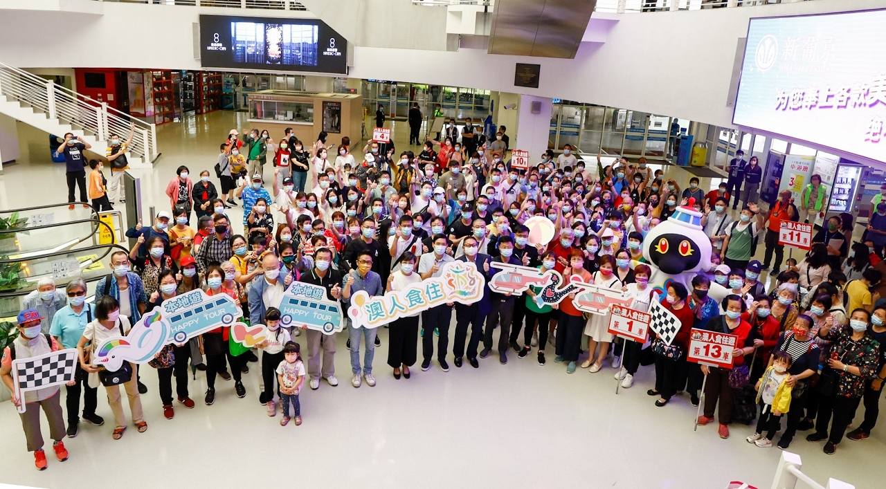 Following the start of hotel staycations under the “Stay, Dine and See Macao” project on 23 April, the first batch of 6 groups with around 230 participants also embarked upon local tours smoothly at the Outer Harbour Ferry Terminal at 9:00 this morning (25 April). Macao Government Tourism Office (MGTO) Director Maria Helena de Senna Fernandes, Deputy Directors Cheng Wai Tong and Ricky Hoi joined the representatives of the “Stay, Dine and See Macao” Task Force to converse and take photos with tour group members before their departure. MGTO Director Senna Fernandes was delighted to hear about residents’ interest in the “Stay, Dine and See Macao” project. She believes the local tours not only can familiarize residents with local tourism resources, but also will bolster the travel trade and stimulate spending in communities.