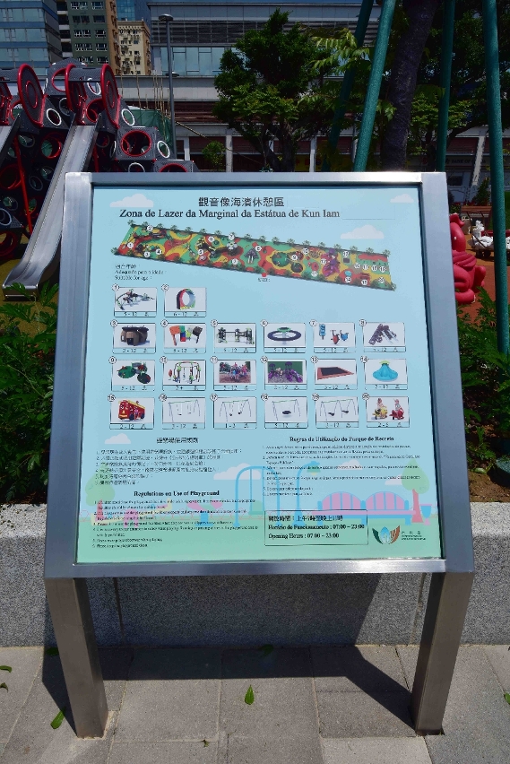 With its construction completed, the Leisure Area of Kun Iam Statue Waterfront will be open for trial operation tomorrow (April 29). Opening hours will be set for the children’s playground and the courts. Anti-epidemic measures such as temperature measurement will be adopted in these areas. The Municipal Affairs Bureau (IAM) predicts that the visitor flow will be heavy during the initial opening period, and after reviewing public opinions, decides to adopt crowd control measures for the children’s playground according to the actual situation.