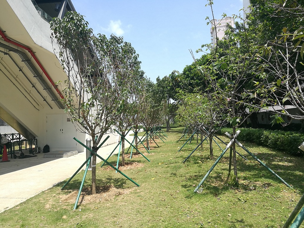 In the selection of tree species, priority is given to tree species grown in southern China where the climate is similar to that of Macao, such as Queen Crape Myrtle, Madagascar Almond, Lance-leaved Sterculia, Spider Tree, Autumn Maple, Hainan Ormosia and Golden Penda. In addition to having pleasant-looking leaves, flowers and fruits, these species are wind and drought resistant. They are planted in seedling form to better balance root and canopy growth, and strengthen the trees’ capacity to abate wind.