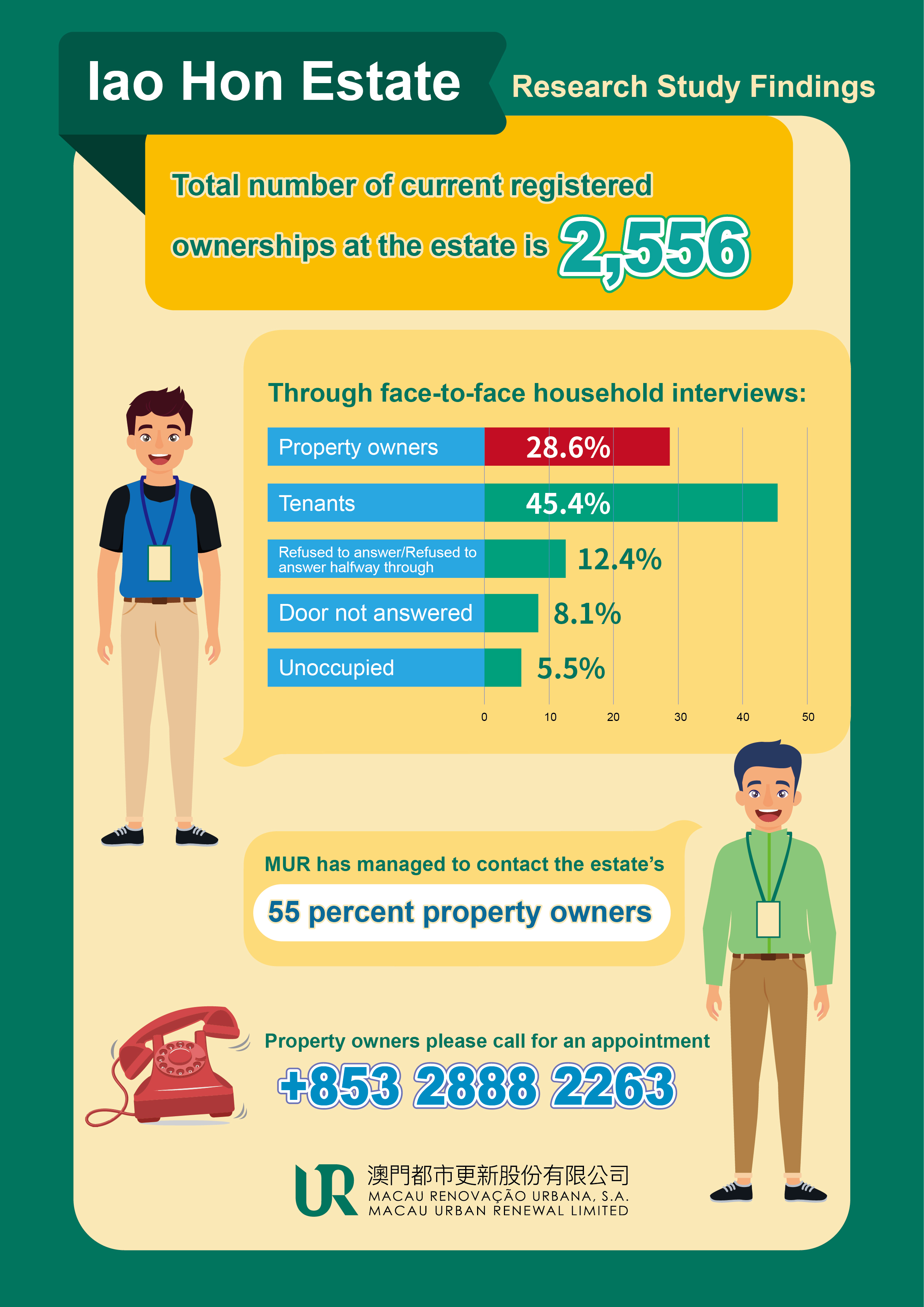 For more information on the research study’s report, please visit MUR’s official website https://www.mur.com.mo. Iao Hon Estate’s property owners please call 2888 2263 to make an appointment with MUR to discuss redevelopment.