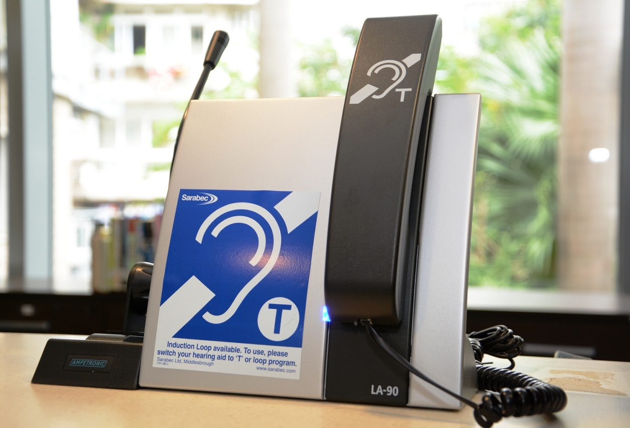 The induction loop kit system is easy to operate. By simply using the handset, hearing impaired people can obtain the maximum intelligibility in the conversation between the library staff through the amplifier of the system. People with T-coil hearing aids can place the handset directly against their hearing aids for pairing. The system magnetically transfers the voice of library staff into the hearing aids, allowing the users to have a clear hearing experience.