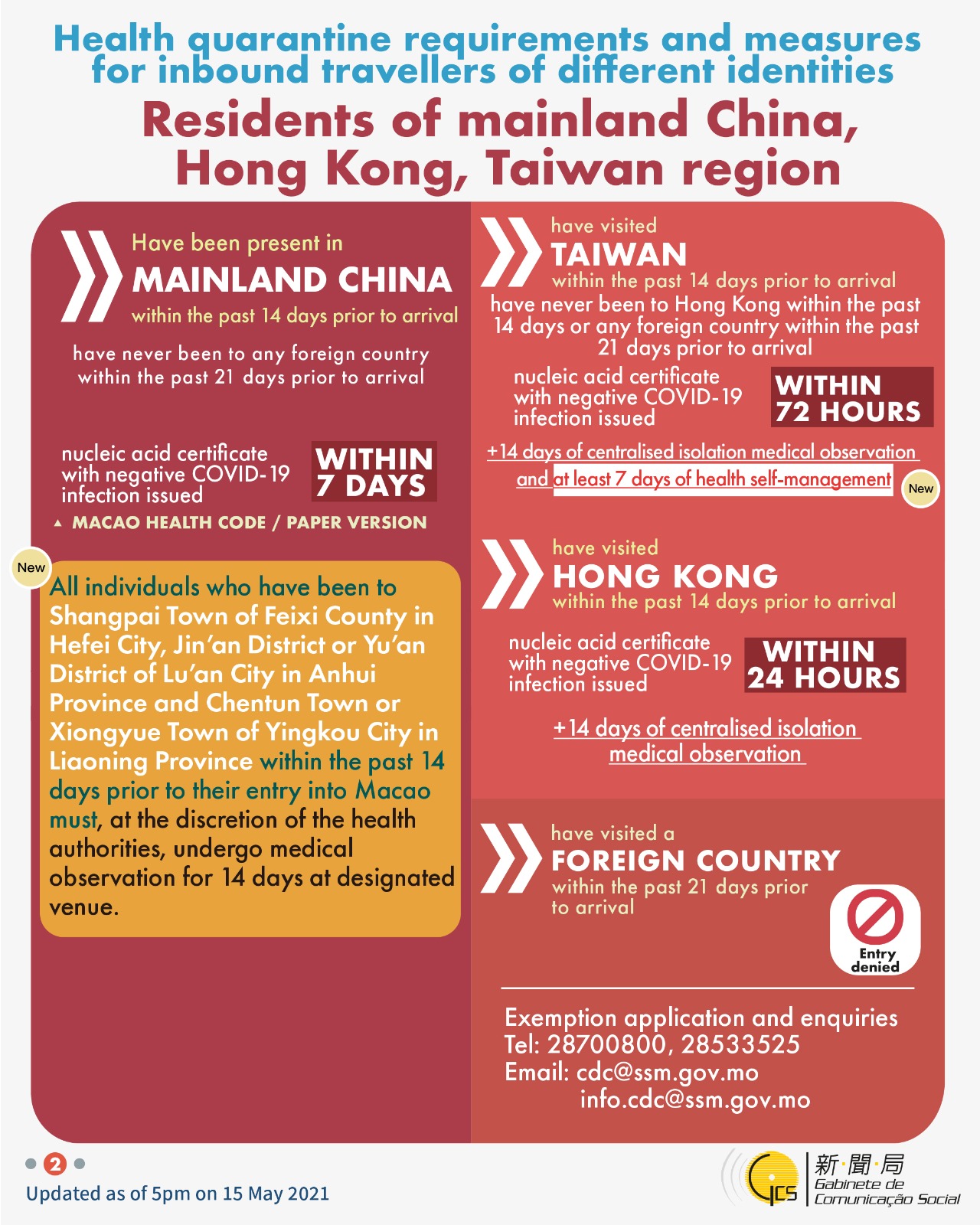 To get the latest official news, please subscribe the Government Information Bureau’s Telegram News Channel at https://t.me/macaogcsEN.