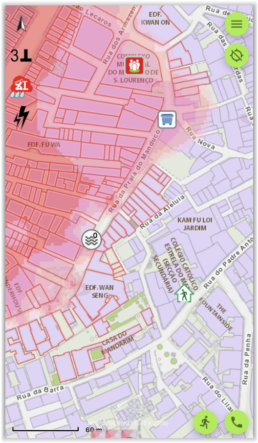 The updated version of “GeoGuide for emergency” provides the latest important geographic information such as the areas expected to be affected during all levels of storm surge and zones may be affected by power suspension measures, “Emergency Refuge Centre” and “Meeting Place /Place to stay for emergency evacuation”, and provides the function of in advance walking route planning to the nearest emergency refuge centre to response to the public needs. When online, the APP will display the real-time severe weather warnings information and water level monitoring information provided by the Meteorological and Geophysical Bureau, and real-time maritime information provided by the Marine and Water Bureau. The App also provides various emergency information and risk/disaster prevention guidelines such as “Emergency Refuge Centre” provided by the Social Welfare Bureau, “Storm surge evacuation plan for low-lying areas during typhoon” provided by the Unitary Police Service and "Class Suspension Arrangements for Schools when a Tropical Cyclone Warning Signal, Rainstorm Warning Signal or Special Weather Statement Is Issued" provided by the Education and Youth Development Bureau.