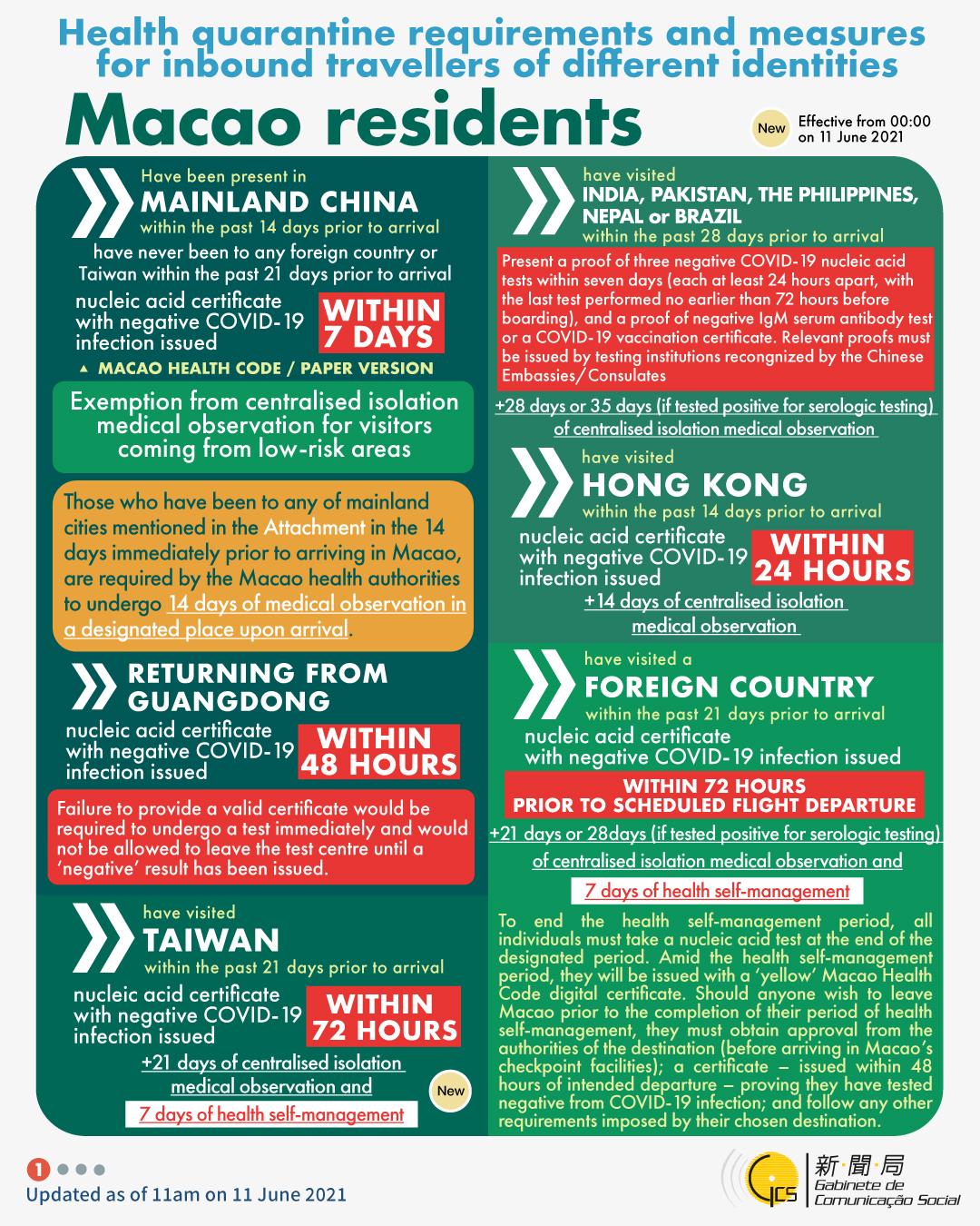 [infographic] 11 June 2021 health quarantine requirements and measures for inbound travellers