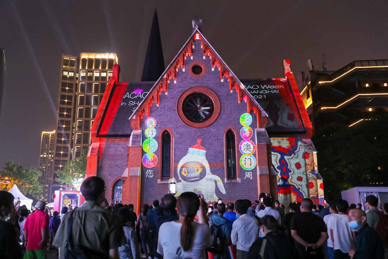 To promote the Macao Week in Shanghai and spotlight Macao as a healthy destination welcoming visitors, mapping shows were projected upon the façade of Union Church on schedule under the theme of MAK MAK and Macao’s East-and-West cultural symphony during the roadshow, drawing passersby to enjoy the feast for the eyes.