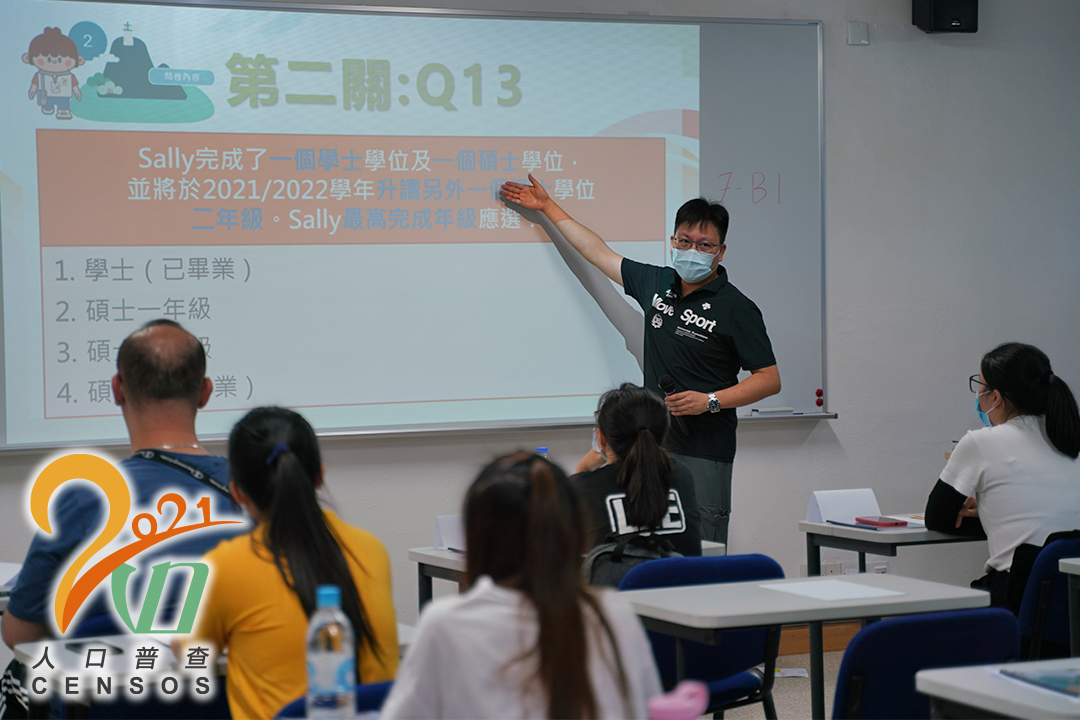 To achieve effective results of the training, a total of 72 classes are held, with 50 instructors from DSEC, to provide classroom training to about 2,600 participants. The classroom training programme for Census officers, which is a combination of theory and practice, aims to provide participants with professional skills and knowledge, including questionnaire content, household interview techniques, contingency measures under unusual circumstances, equipment operation, etc. Moreover, Census Hotline operators and leaders are required to receive extra training relevant to their job duties. Assessment of the participants is based on their grades and performance during the online and classroom training, and participants obtaining the passing scores will take part in the Census operation in August.
