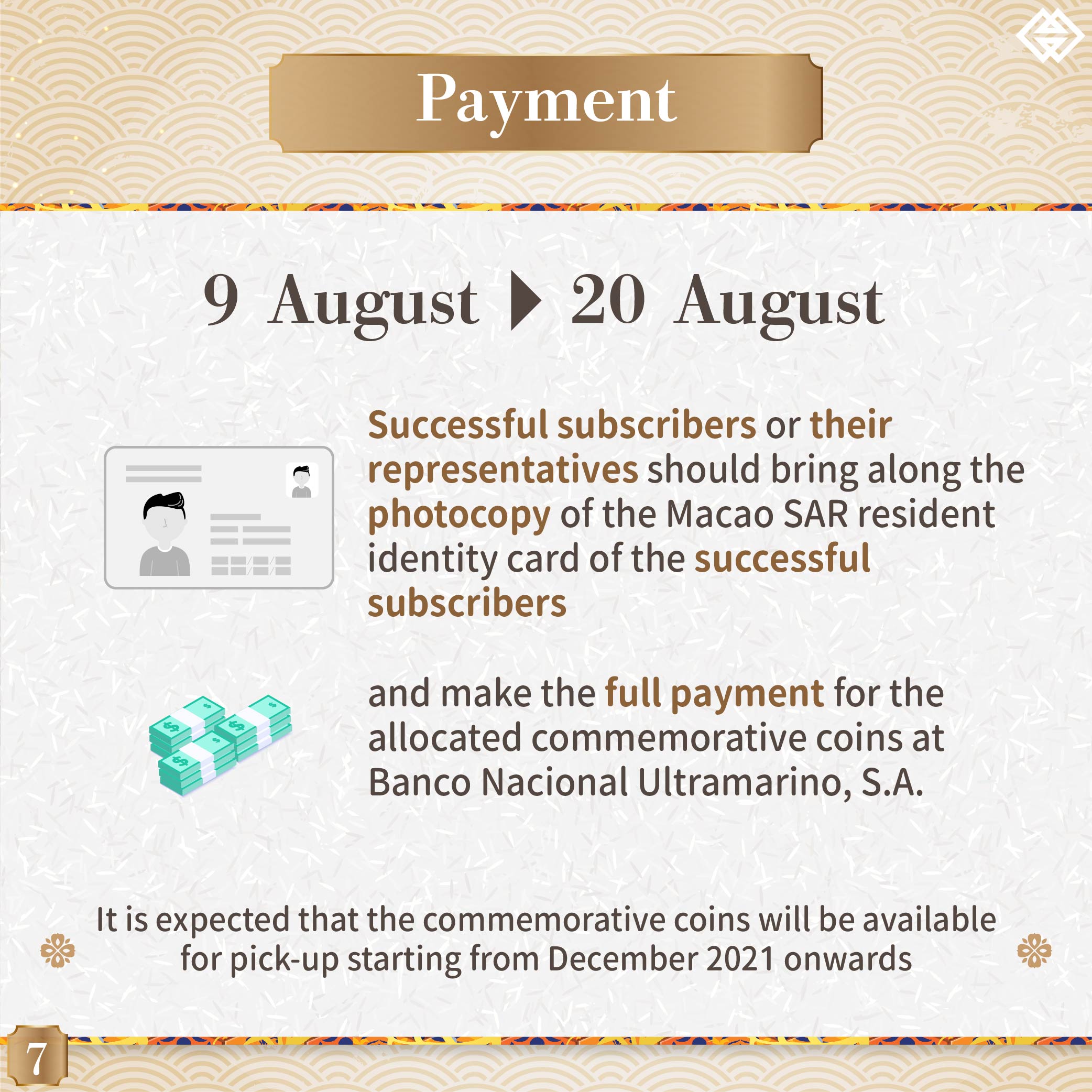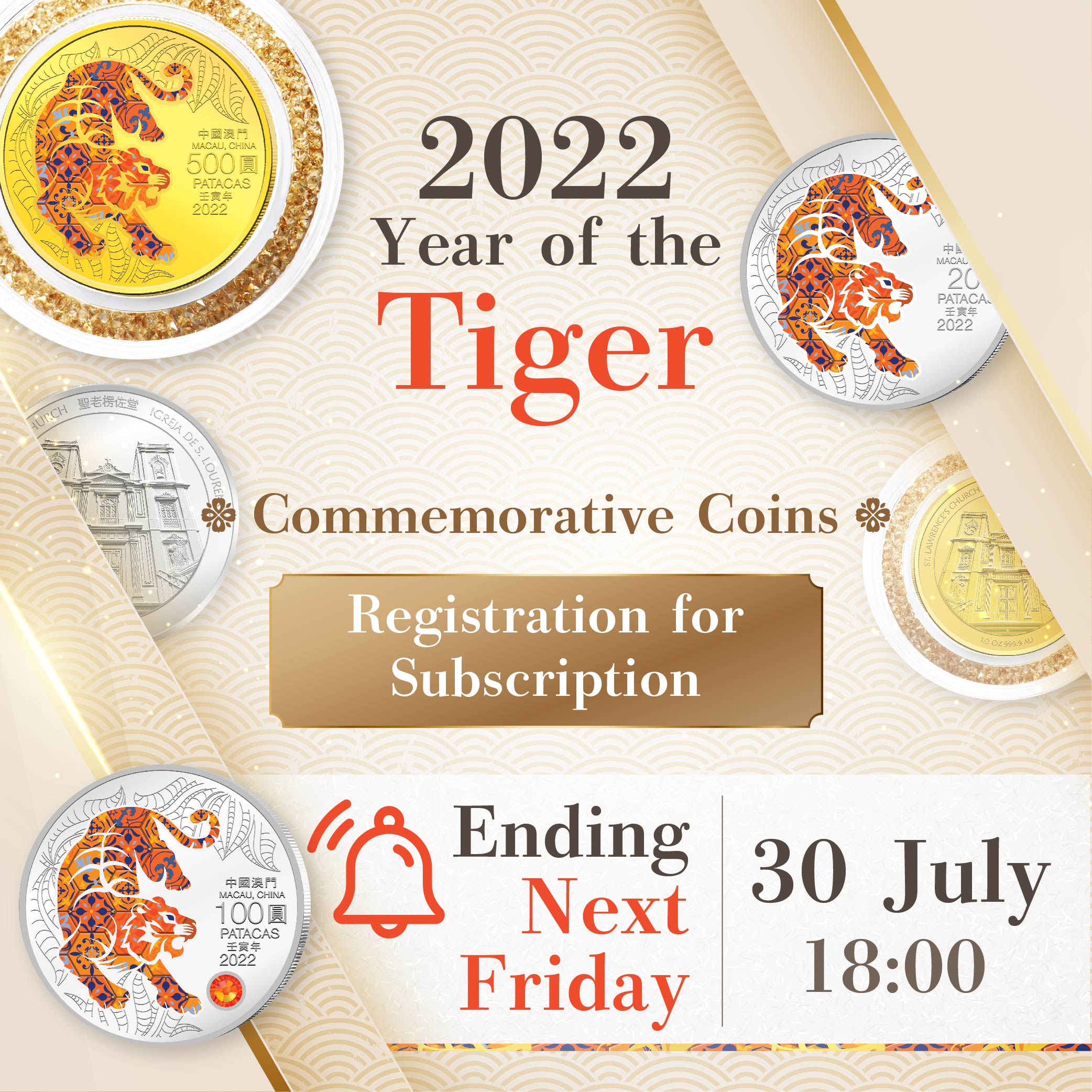 The online subscription period for the 2022 Year of the Tiger commemorative coins (AMCM) will end at 6:00pm on 30 July 2021 (next Friday). Hence, AMCM would like to remind Macao residents who are interested in subscribing for the said coins to complete the online subscription process before the mentioned deadline ( https://www.amcm.gov.mo/static/COCSCollection/terms_pt.html ). A service counter has also been set up at the lobby of AMCM during the mentioned time period to provide registration service for those elderly citizens who require assistance. For enquiries, please call our hotline at 28565071 or visit our webpage.