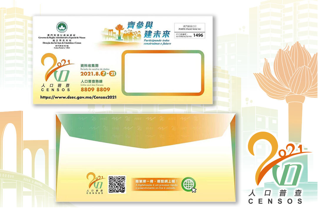 The Population Census is conducted in accordance with the Administrative Regulation no. 6/2021 – “2021 Population Census Regime”. All Census respondents must provide the required information within the specified period. DSEC appeals to the public to support the Census, co-operate with the visiting Census officers and provide accurate information. For more information, please visit the webpage of the 2021 Population Census (https://www.dsec.gov.mo/Censos2021) or call the Census Hotline at 8809 8809.