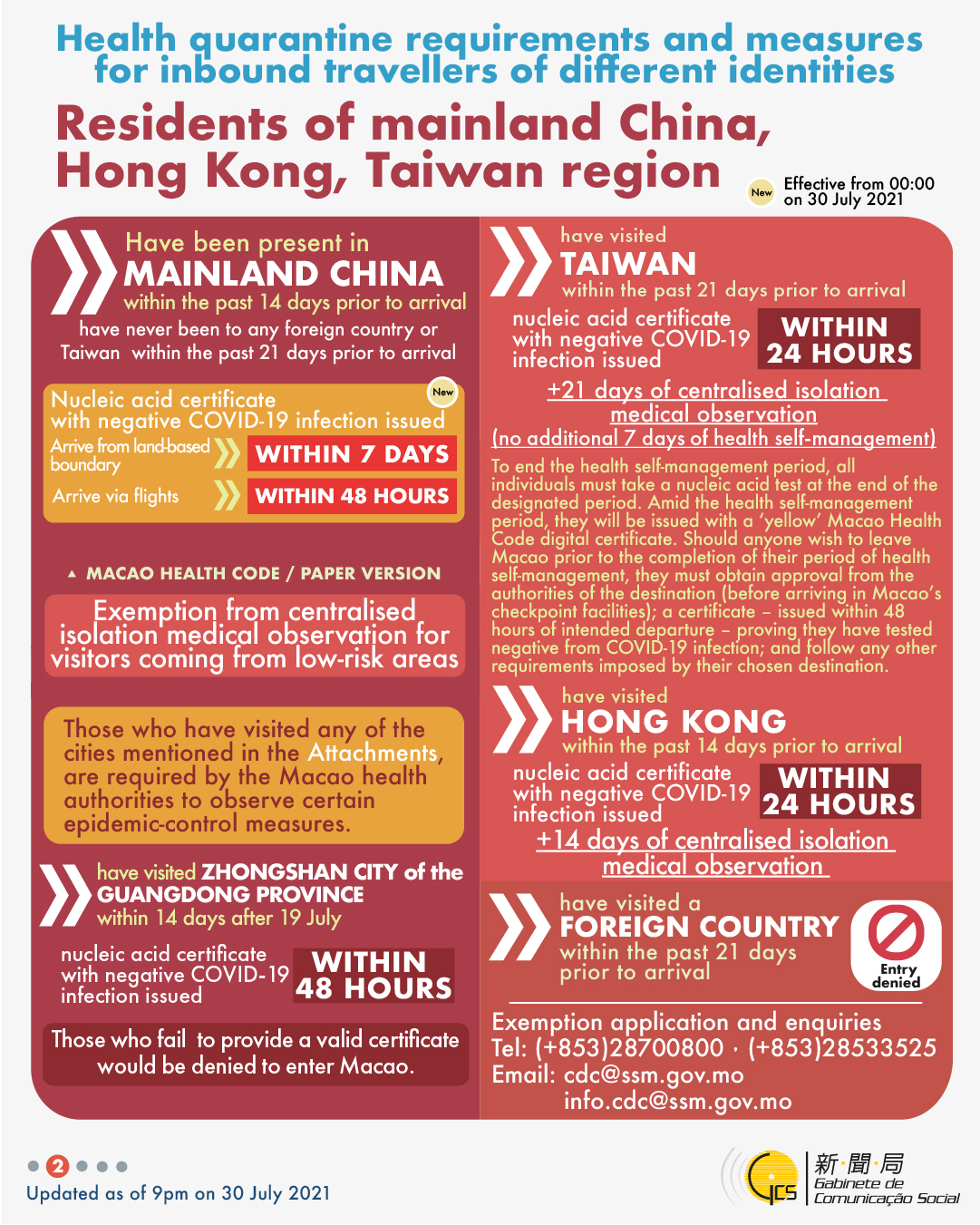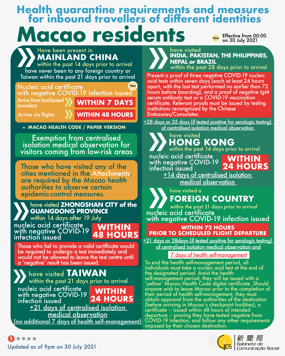 [infographic] 30 July 2021 health quarantine requirements and measures for inbound travellers