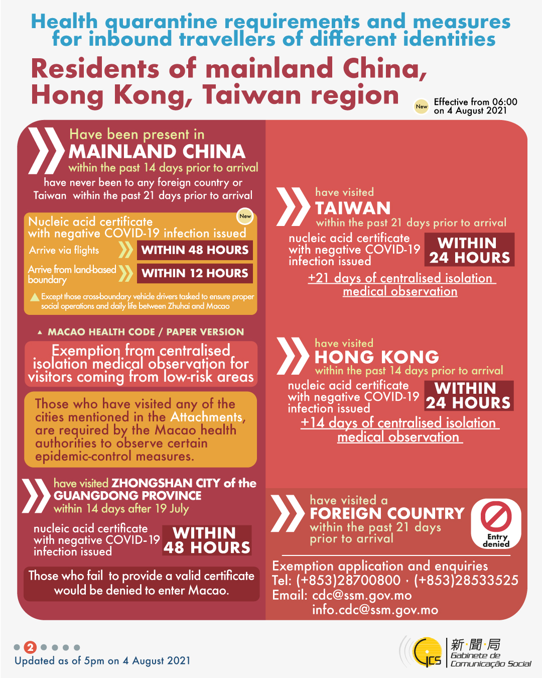 [infographic] 4 August 2021 health quarantine requirements and measures for inbound travellers