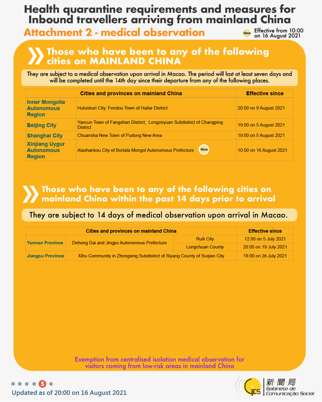 To get the latest official news, please subscribe the Government Information Bureau’s Telegram News Channel at https://t.me/macaogcsEN.