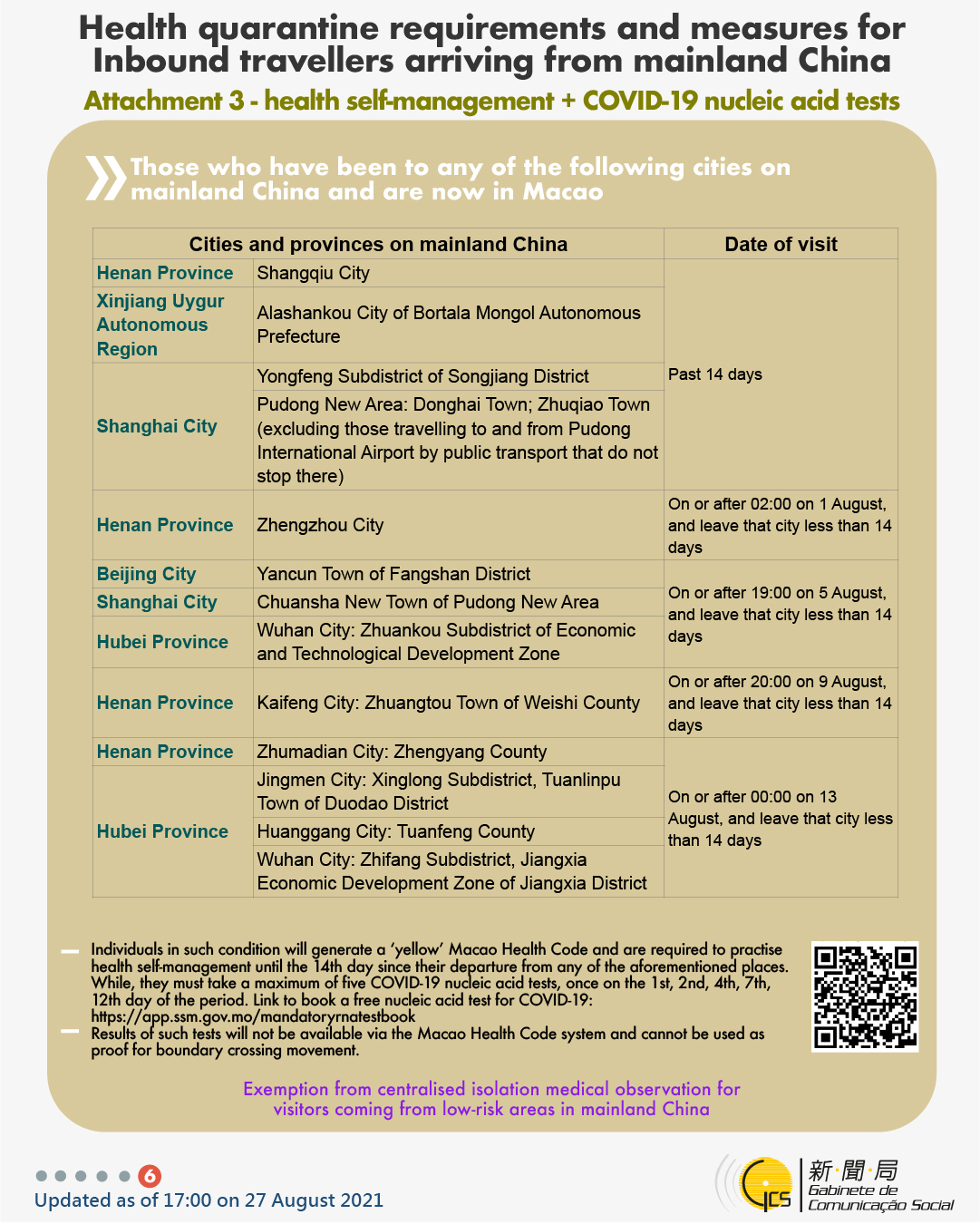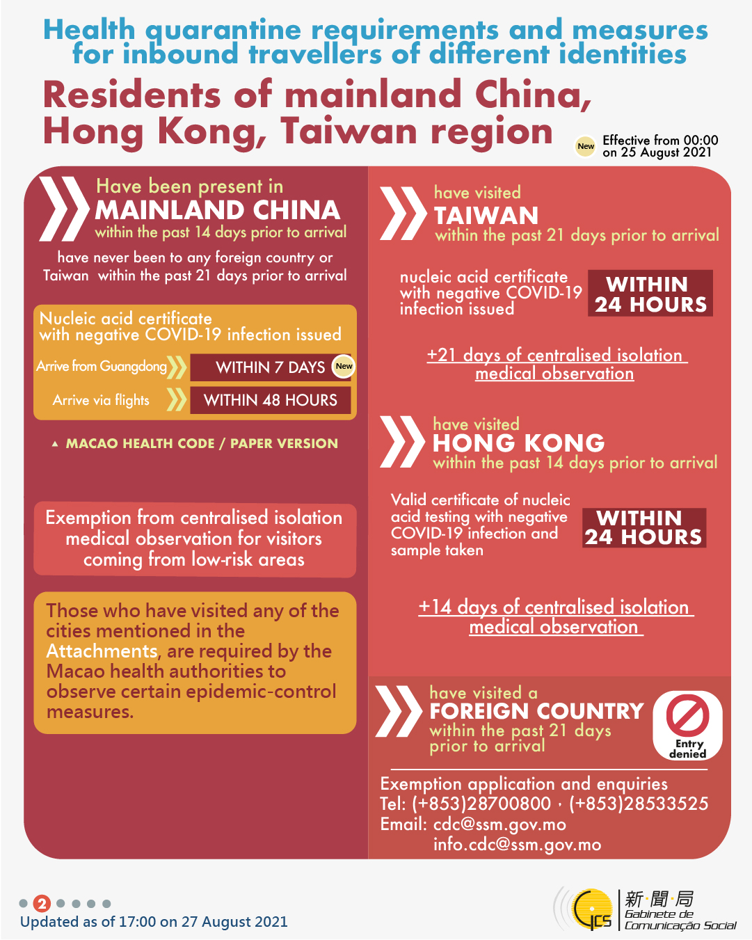 [infographic] 27 August 2021 health quarantine requirements and measures for inbound travellers