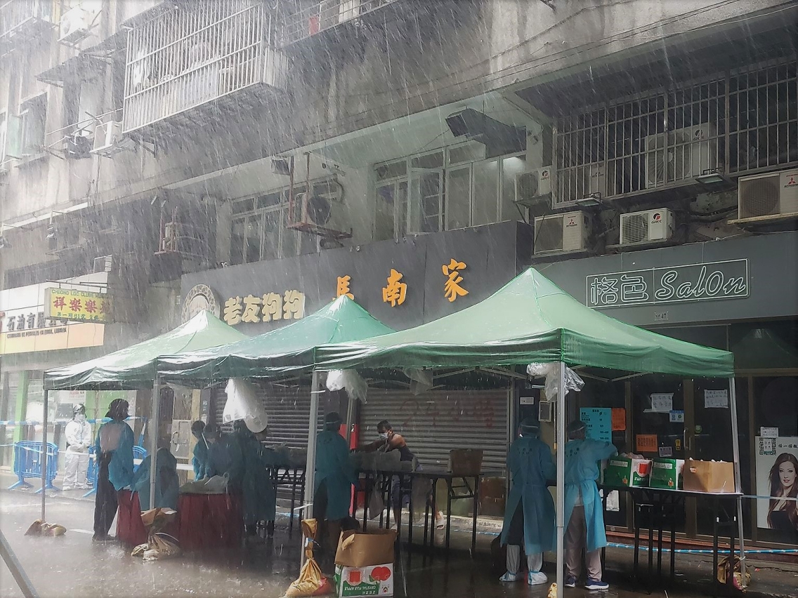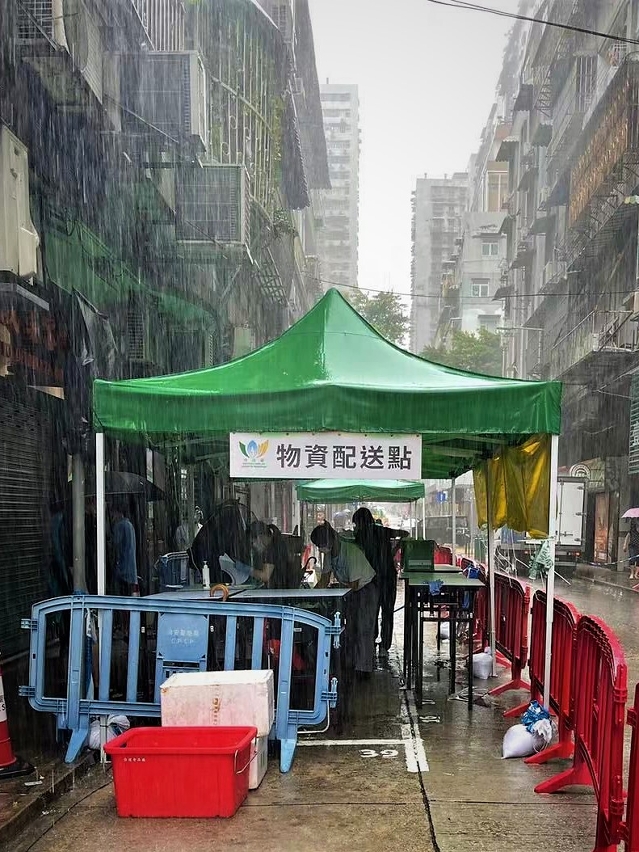 Today (9 October), provision of hot meals in enclosed Red Code Zones and Yellow Code Zones in Macao Peninsula remains unaffected by the typhoon. The meals for the residents in the Yellow Code Zone of Bairro das Missões in Rua de S. Francisco Xavier, Coloane are temporarily replaced with emergency food packs due to limitation in logistics and the outdoor environment. The meal distribution location is temporarily relocated to Associação de Moradores de Coloane.