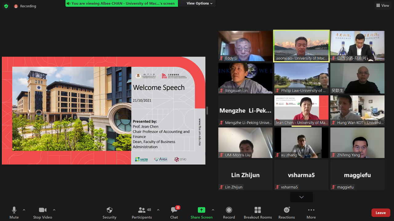 The University of Macau (UM) Faculty of Business Administration (FBA) and Peking University’s Guanghua School of Management jointly held an online conference on auditing and public policy in China. The event was held in preparation for a special issue of the Journal of Accounting and Public Policy (JAPP) to be published later. During the conference, over 200 experts and scholars from around the world exchanged ideas on opportunities and challenges in auditing research in China.