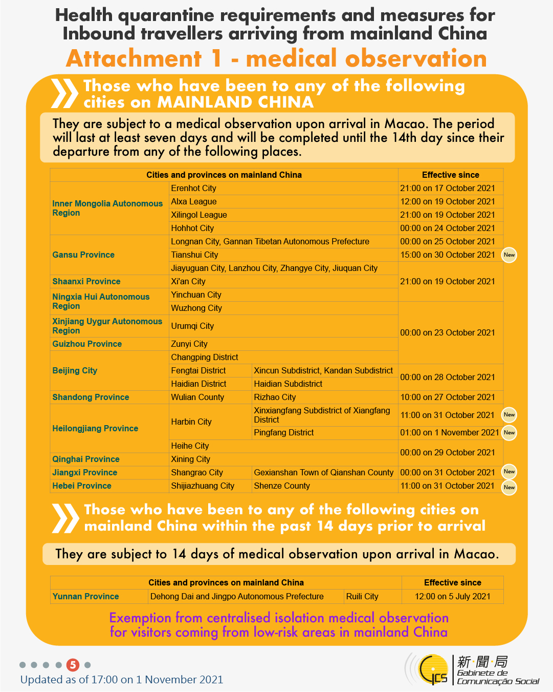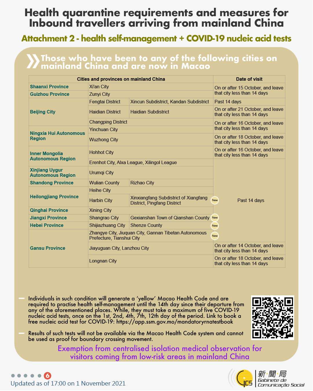[infographic] 1 November 2021 health quarantine requirements and measures for inbound travellers