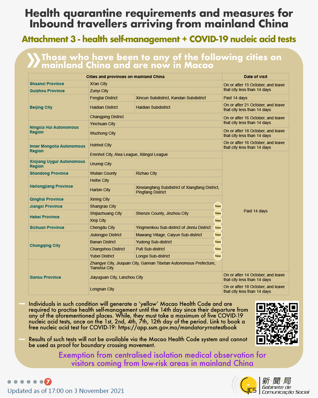 [infographic] 3 November 2021 health quarantine requirements and measures for inbound travellers