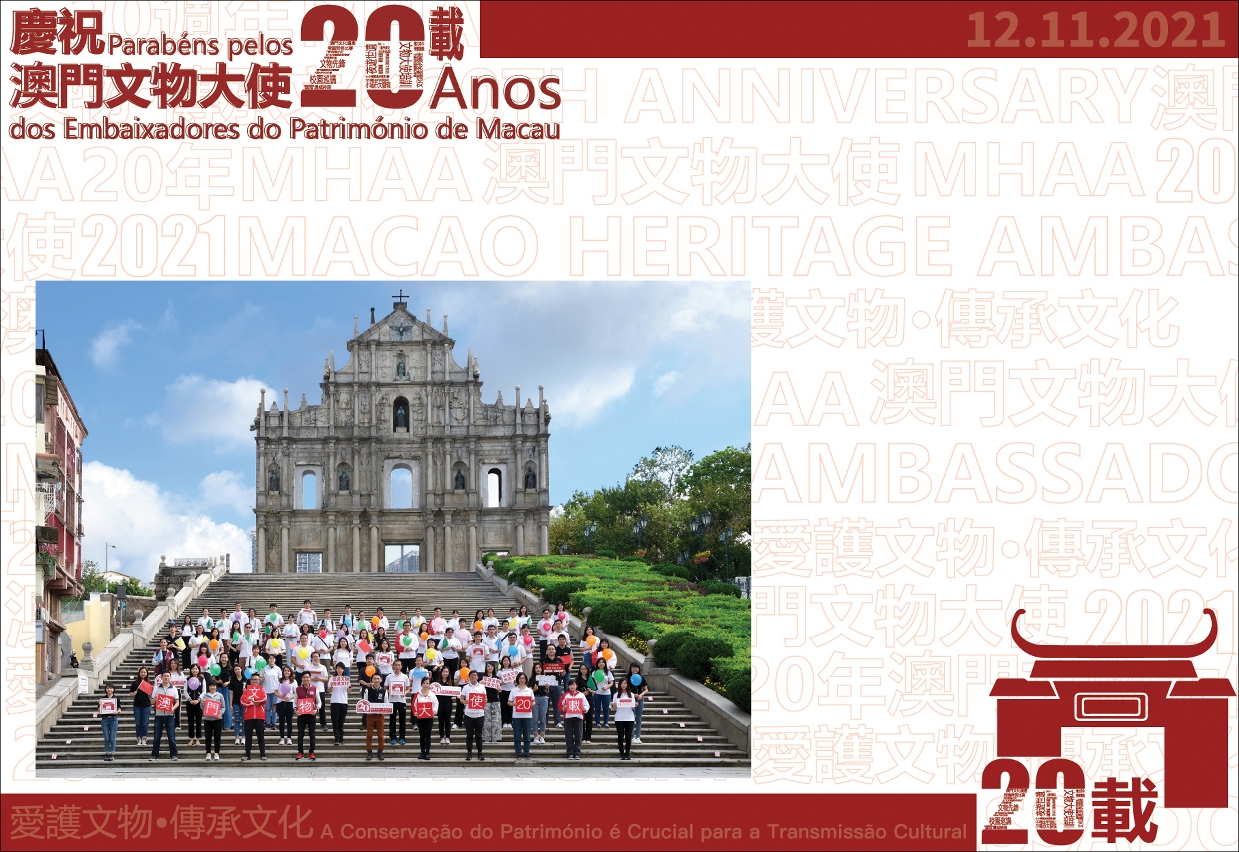 To celebrate the 20 years of the Macao Heritage Ambassadors, Macao Post and Telecommunications Bureau announces that a Temporary Post Counter will be set up at our Philatelic Shop of General Post Office, from 10:00 to 17:00 on 12th November 2021 to provide the commemorative postmark cancellation service for the “20 Years of the Macao Heritage Ambassadors”. A commemorative postcard priced at MOP3.00 will be issued.