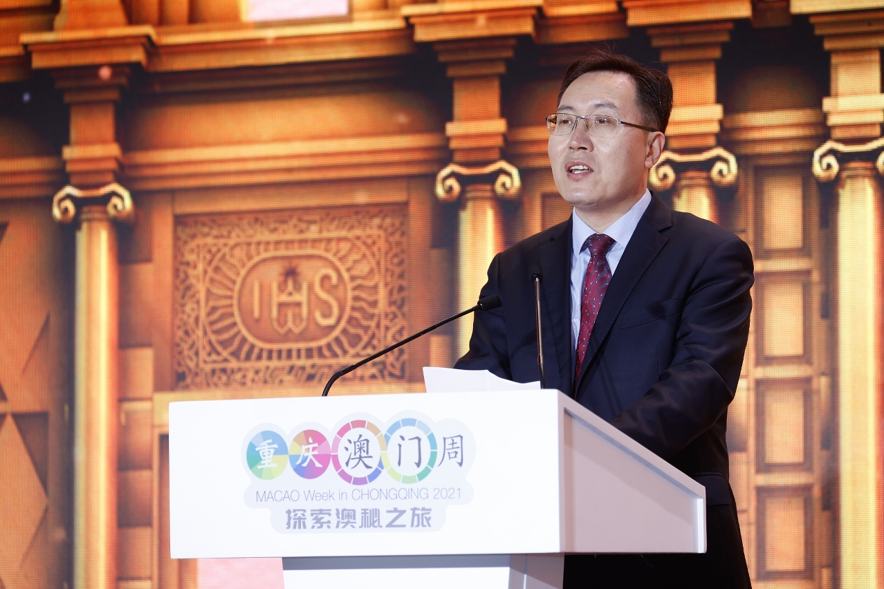 Vice Mayor of the People’s Government of Chongqing Municipality, Cai Yunge, remarked in his speech that from Yu’ao Bridge which spans across Jialing River, to various initiatives of mutual cooperation put into implementation in different fields, Chongqing and Macao have forged closer collaboration and yielded effective results in different areas including trade and commerce, transportation, Chinese medicine, culture, tourism, MICE, education, youth exchange and joint fight against the COVID-19 pandemic. Embracing the golden opportunity brought by the Macao Week in Chongqing 2021, Chongqing will take another step forward in exchange and cooperation with Macao, as both cities join hands to pay more mutual visits of officials, deepen cooperation and consensus, build the platform of trade and commerce, expand the spectrum of collaborative channels and enhance people-to-people exchange for closer friendship between the people of both cities. Chongqing will capitalize on the advantages and function of Macao as a commerce and trade cooperation platform between China and Portuguese-speaking countries to connect and forge new partnerships with Portuguese-speaking countries in trade and commerce, jointly expanding markets and creating platforms for opening up and mutual sharing. He believes that as the people of both cities join hand in hand in solidarity, Chongqing and Macao will march towards a brighter future for cooperation.