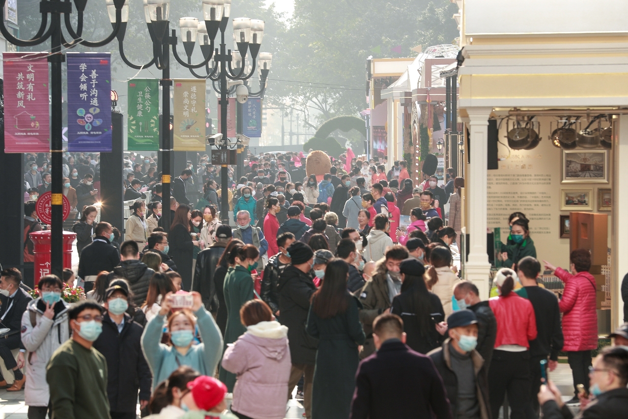 For five days in a row, the mega roadshow is staged at Jiefangbei Square at Yuzhong District in Chongqing to showcase Macao’s colorful dimensions of tourism, trade and commerce, culture and creativity, sports, entertainment and more through an array of zones/booths themed as follows: overview about Macao and its gastronomy, festivals and events; MAK MAK Shop; Macao Good Shop; Macao’s sport events; “A glimpse into Macao Grand Prix Museum”; Macao’s tourism products for sale; trade, commerce and economy of Macao; an informative display by Economic and Technological Development Bureau, as well as a showcase of Macao’s tourism industry presented by pertinent integrated tourism enterprises and airline company. There is also a tourist information counter offering Macao travel tips on site and sharing with Chongqing residents about the requirement for visitors to Macao to present valid proof of negative result of a COVID-19 nucleic acid test taken within an extended period of seven days without requirement of medical observation. Staffers at various booths devote great efforts to promote Macao’s distinctive elements, while Macao Tourism Mascot MAK MAK appears for a friendly encounter with residents and visitors in Chongqing, striving to boost their intention to visit Macao.