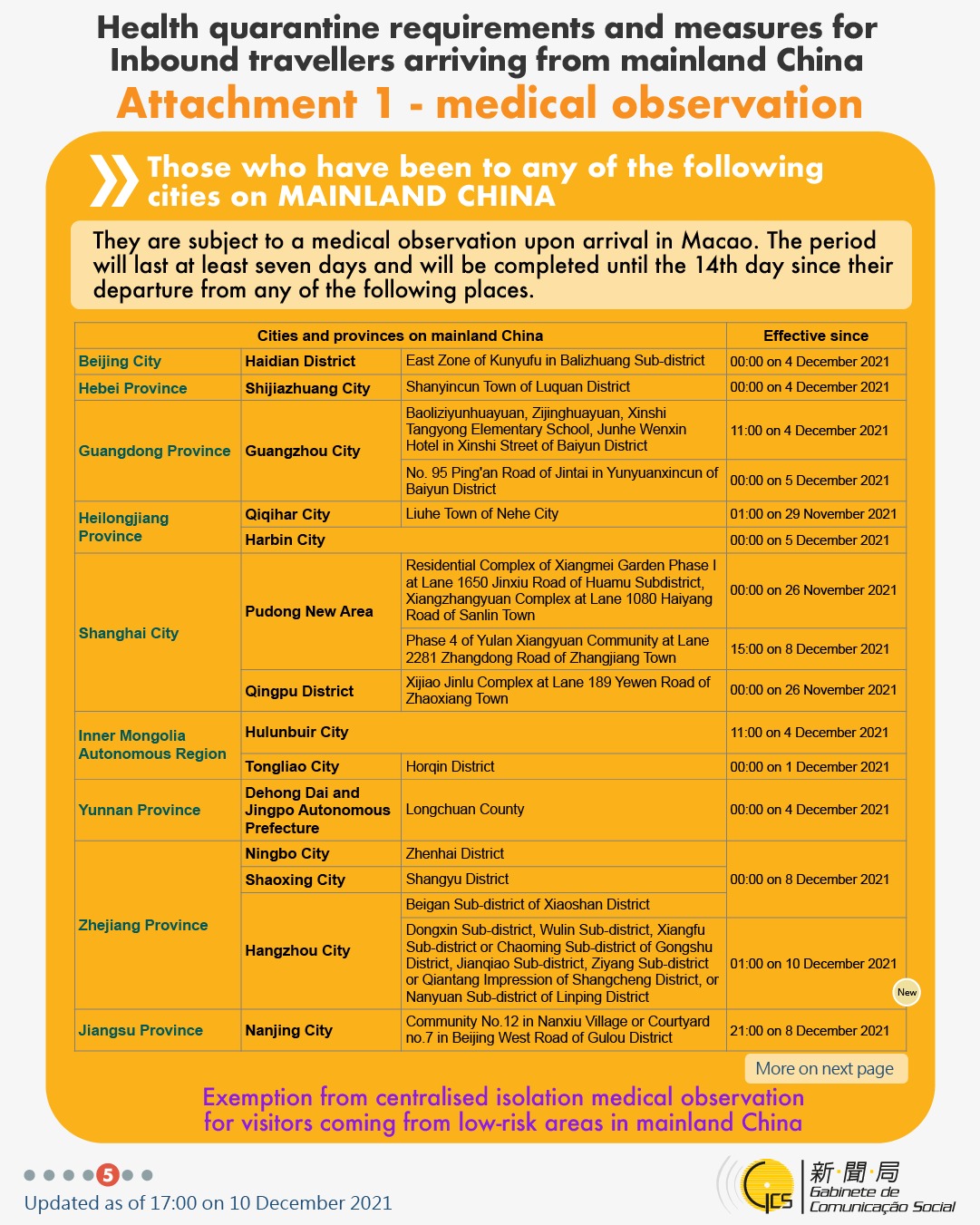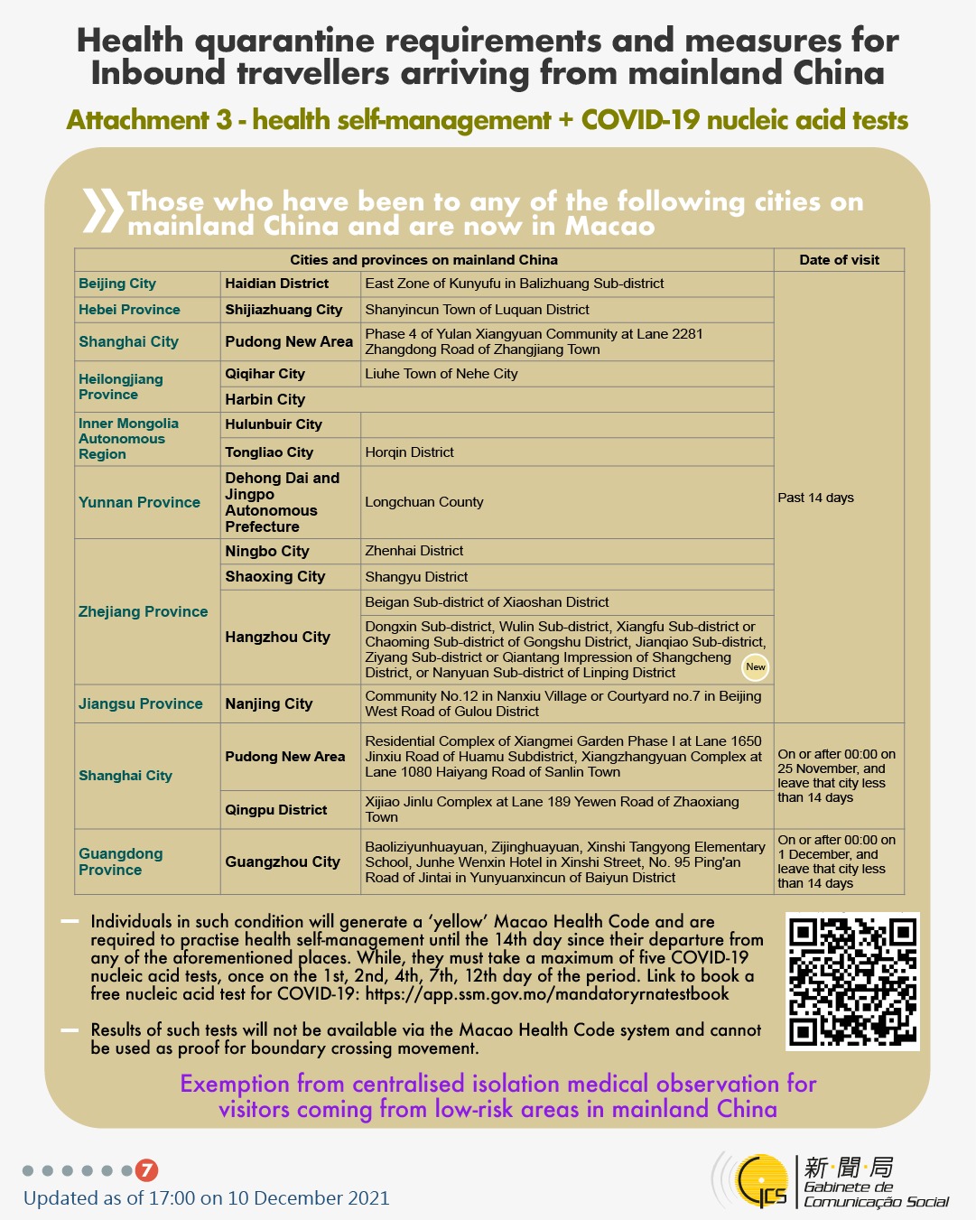 [infographic] 10 December 2021 health quarantine requirements and measures for inbound travellers of different identities.