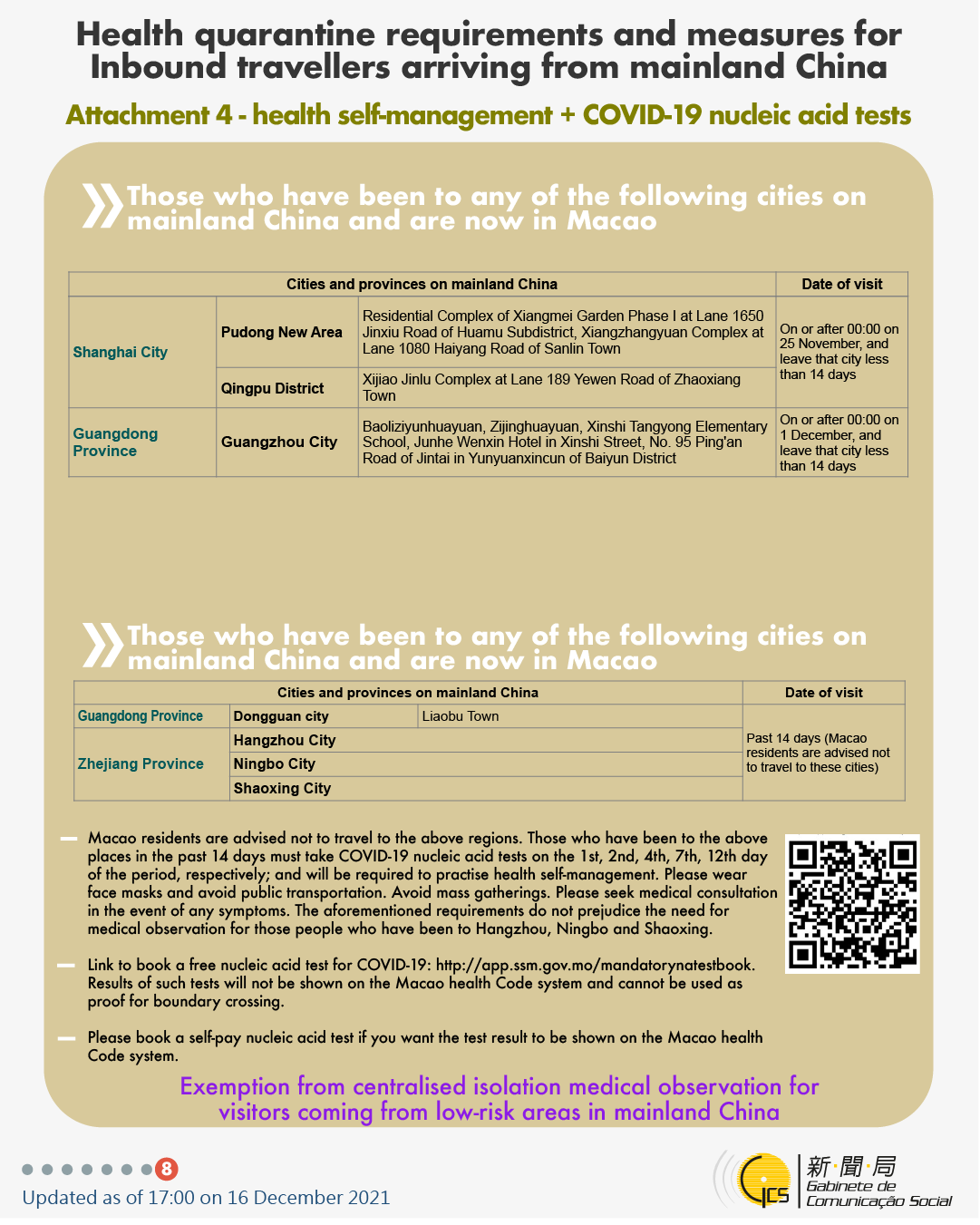 [infographic] 17 December 2021 health quarantine requirements and measures for inbound travellers of different identities.