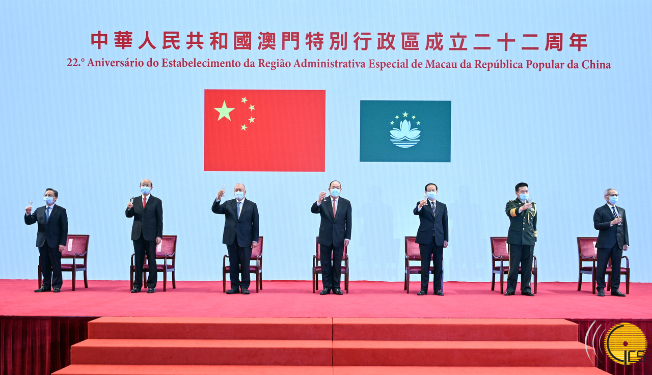 Approximately 940 guests attended today’s reception for the 22nd anniversary of the establishment of the MSAR. They included: Vice Chairman of the Chinese People’s Political Consultative Conference, Mr Ho Hau Wa; Director of the Liaison Office of the Central People’s Government in the MSAR, Mr Fu Ziying; Commissioner of the Office of the Commissioner of the Ministry of Foreign Affairs of the People’s Republic of China in the MSAR, Mr Liu Xianfa; the Commander of the People’s Liberation Army (PLA) Macao Garrison, Mr Xu Liangcai; the President of the Legislative Assembly, Mr Kou Hoi In; the President of the Court of Final Appeal, Mr Sam Hou Fai; members of the Executive Council and of the Legislative Assembly; Government principal officials; Macao’s delegates to the National People’s Congress and to the Chinese People’s Political Consultative Conference; and people from across the community.