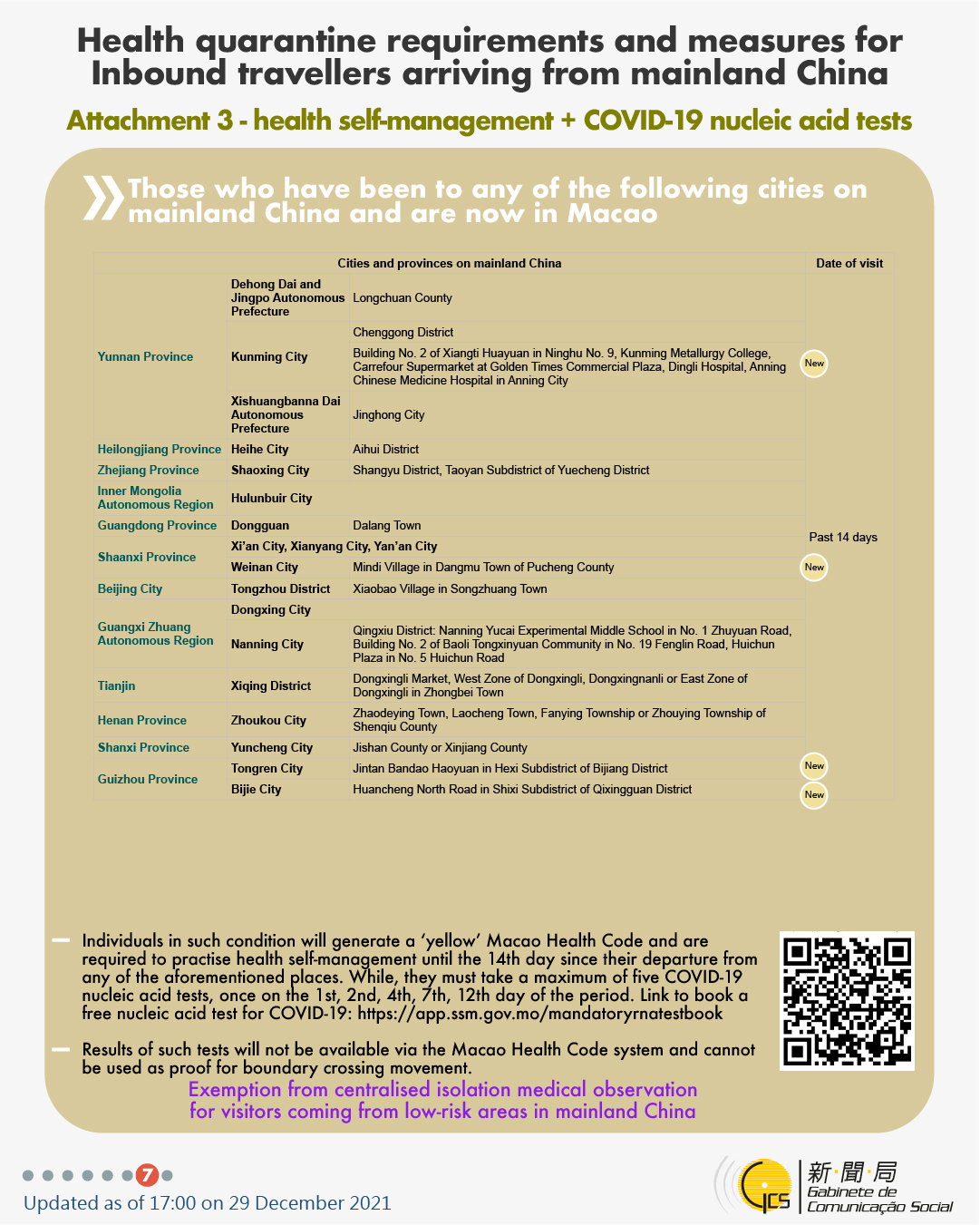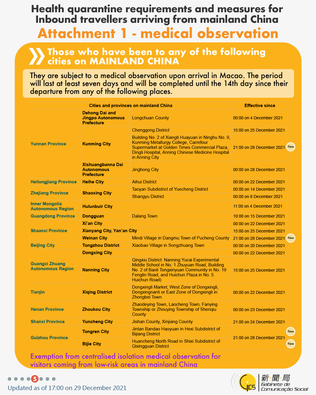 [infographic] 29 December 2021 health quarantine requirements and measures for inbound travellers of different identities.