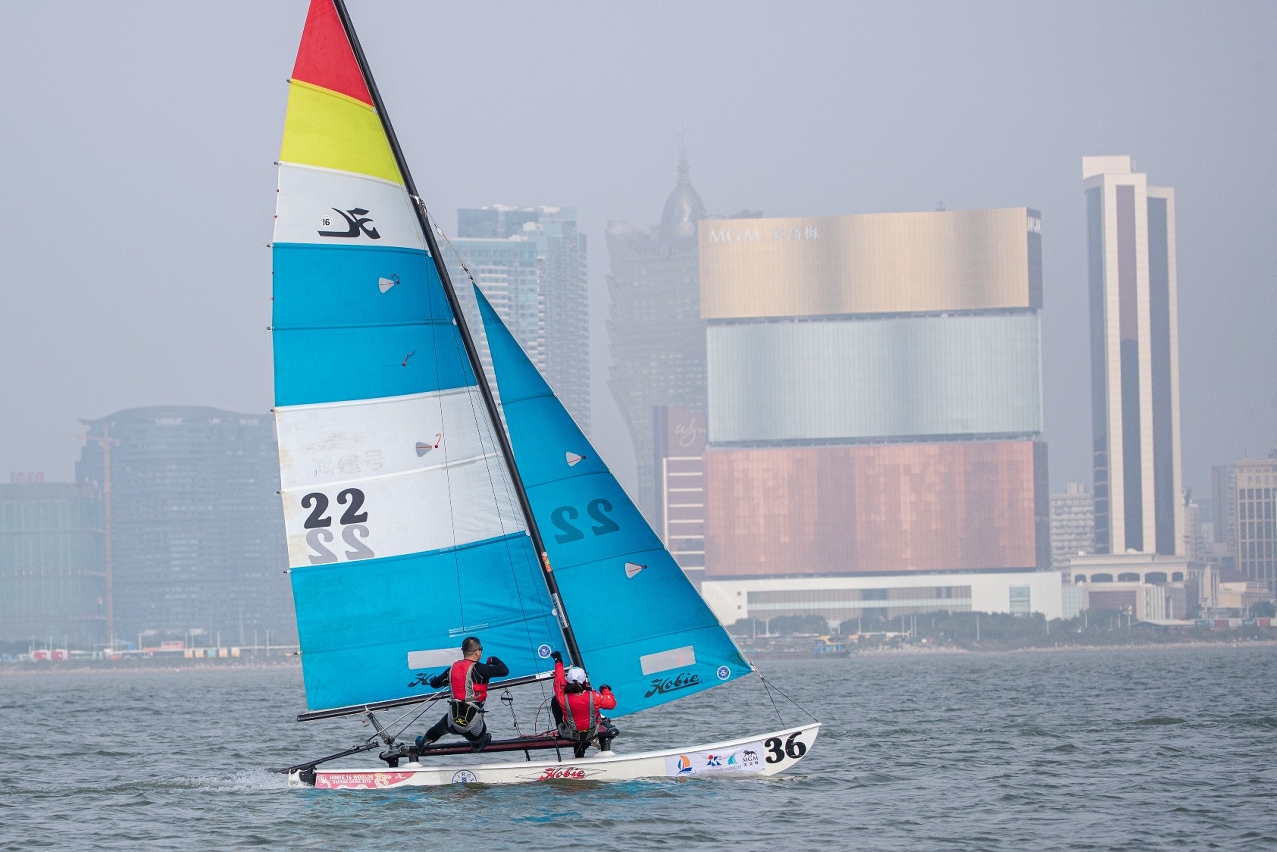 Participating teams entered the third day of the 2022 MGM Macao International Regatta fighting for the lead in the standings. Muwu BBQ, Hua Yun Health Care Sailing Team and Sanya UC.18 Sailing Team will go into the final day tomorrow as the overall leaders in the Macao Cup International Regatta (Beneteau First 40.7 unified design group), the Guangdong-Hong Kong-Macao Greater Bay Area Cup Regatta (IRC group) and the International Catamaran Invitational (Hobie 16 unified design group), respectively.