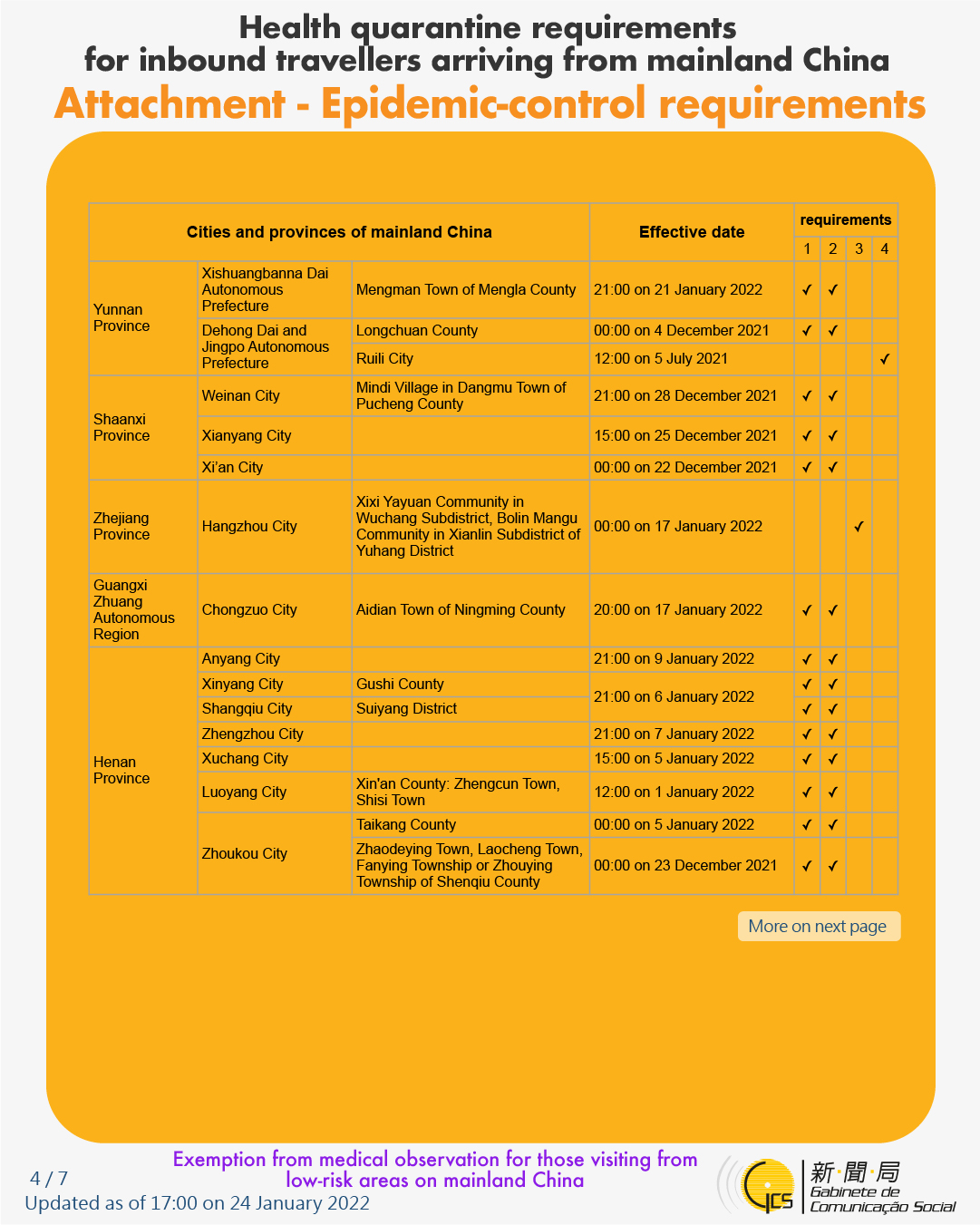 [infographic] 24 January 2022 health quarantine requirements and measures for inbound travellers of different identities.