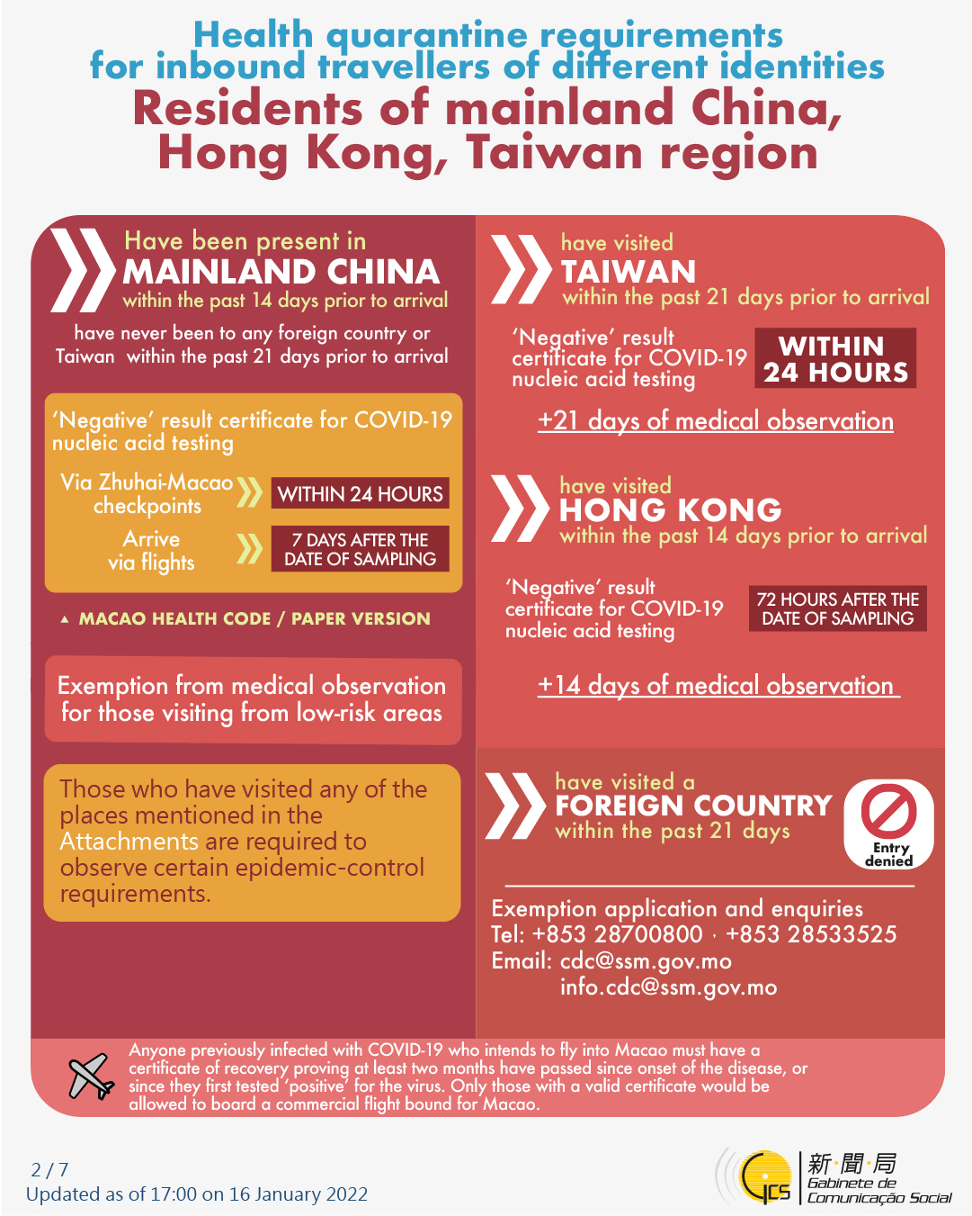 To get the latest official news, please subscribe the Government Information Bureau’s Telegram News Channel at https://t.me/macaogcsEN.