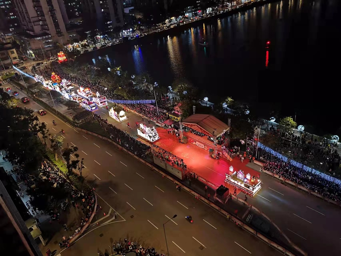 Accompanied by the mega lion dance show, the floats set off from Rua Norte do Patane to march until Iao Hon Market Garden. Under crowd management measures, audiences enthusiastically joined along the route, waving and cheering for the floats. A finale show was staged at Iao Hon Market Garden with a series of fascinating performances delivered by Macao artist Germano Guilherme and pop group MFM, performing groups, Hong Kong artists Joe Ma and Janis Chan, among others, all together welcoming the arriving floats with joyful and lively vibes.