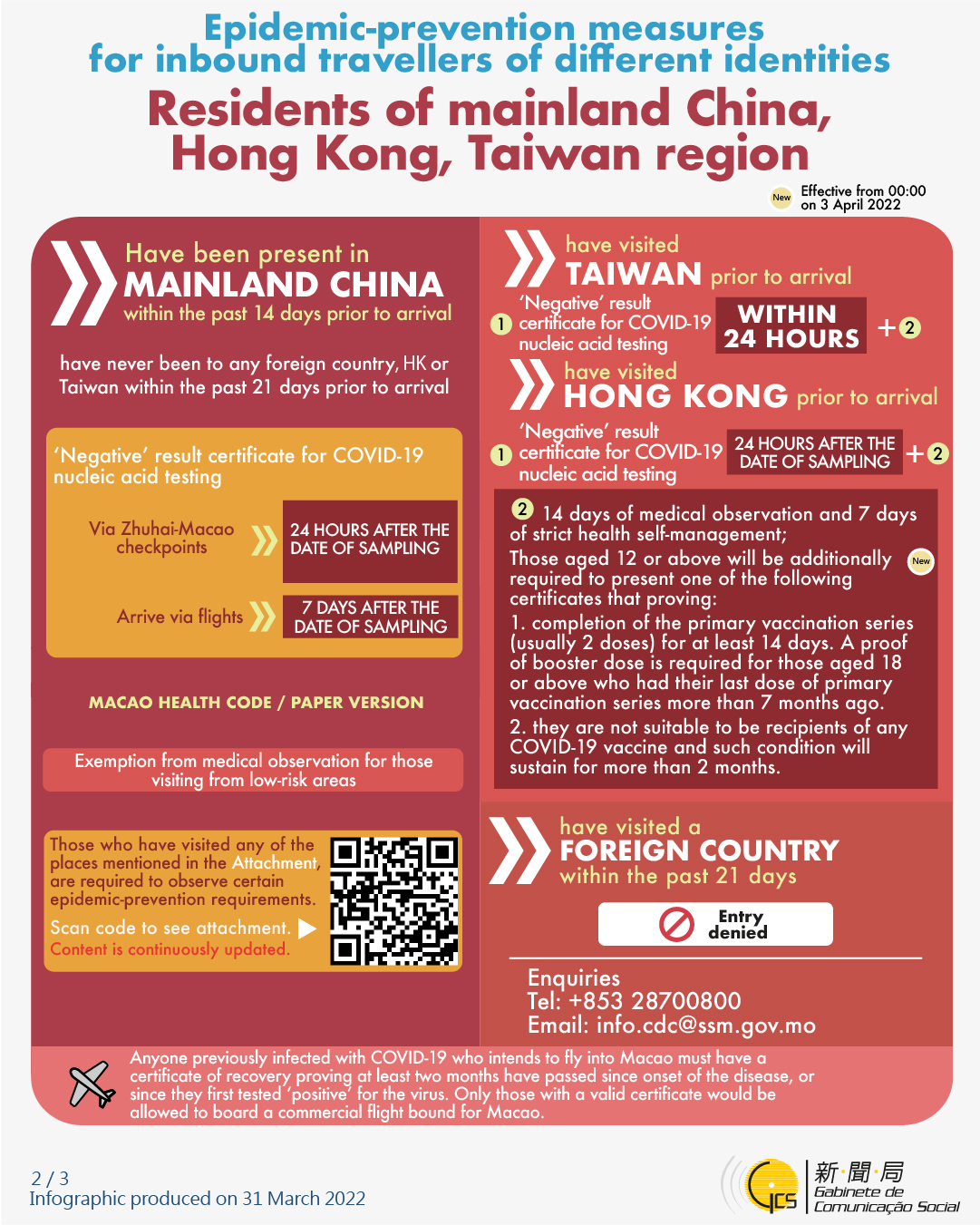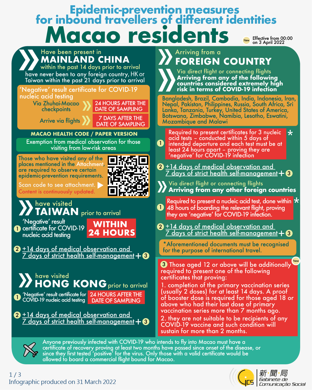 [infographic] 31 March 2022 epidemic-prevention measures for inbound travellers of different identities