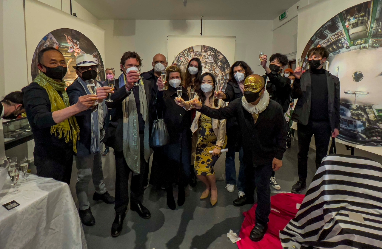 Organised by the Macao Museum of Art, under the auspices of the Cultural Affairs Bureau of the Macao SAR Government, and co-organised by the Venice-based PDG Arte Communications as a Collateral Event from Macao, China at the 59th International Art Exhibition – La Biennale di Venezia, the exhibition “YiiMa” Art Group: Allegory of Dreams was inaugurated on 22 April 2022 in Venice, Italy. Curated by internationally renowned curator João Miguel Barros, the exhibition showcases 11 pieces (sets) of the latest integrated works by artists Ung Vai Meng and Chan Hin Io from “YiiMa” Art Group, which show a unique perspective that merges land and sky and offers a reinterpretation of the richness and density of some hidden corners of Macao and memories of the city that are fading away like dreams. It is the eighth year that Macao contemporary artworks have been featured in this century-old international art event, giving visitors an overview of the city’s visual art. Many guests attended in the ceremony and expressed support and congratulations for the exhibition, including the Italian Curator, Paolo De Grandis; the Italian entrepreneur, Aureliano Schirripa; the Director of the Milan-based cultural and creative brand YouthPlus, Qiu Lesha; and the representative of the art association Círculo dos Amigos da Cultura de Macau, Konstantin Bessmertny. On the day of the inauguration, a “foil stamping” art performance was given by the “YiiMa” Art Group at the collateral event and was concluded in a lively atmosphere.