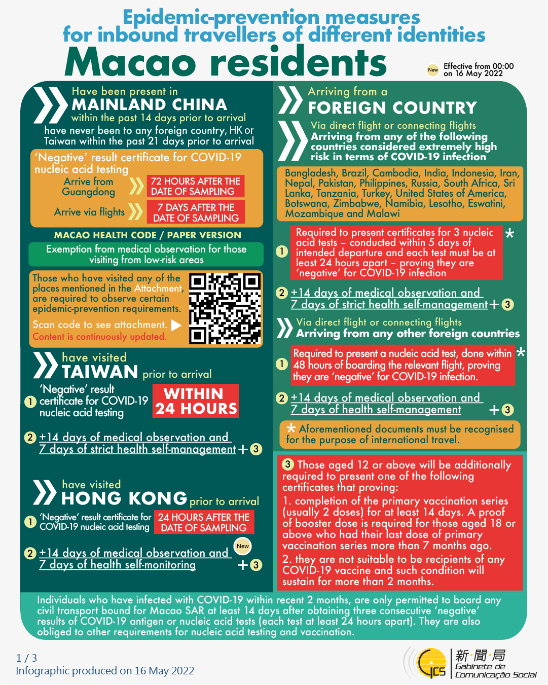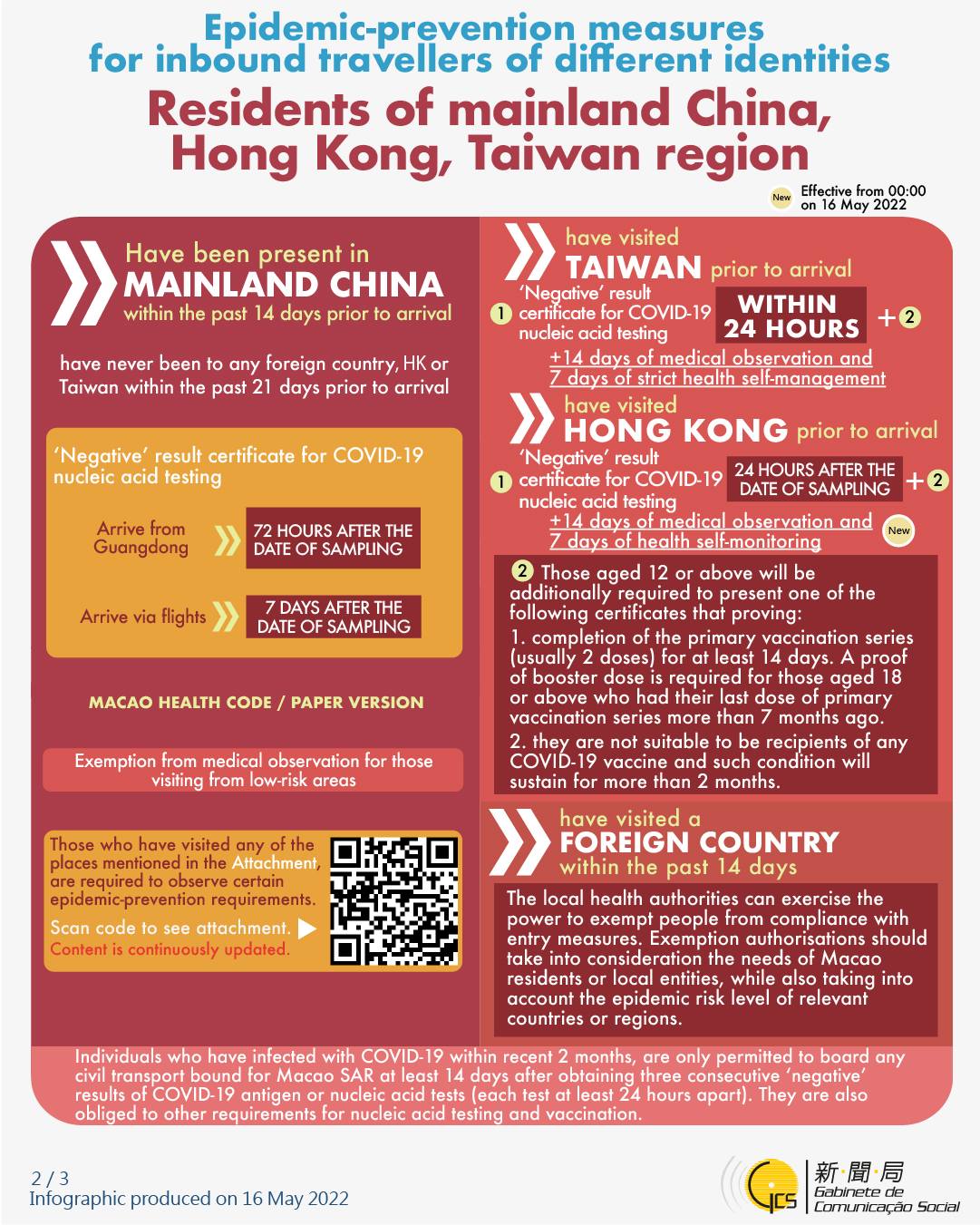 [infographic] 16 May 2022 epidemic-prevention measures for inbound travellers of different identities