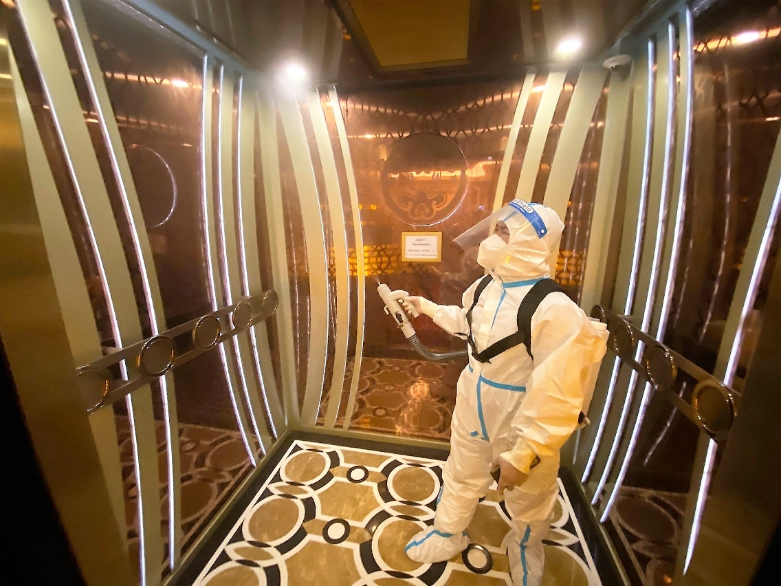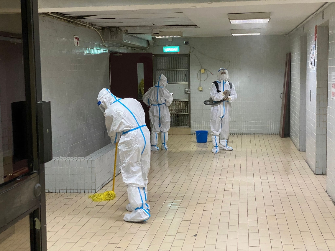 In view of the newest development of the novel coronavirus pandemic and in compliance with the prevention and control work, the Municipal Affairs Bureau (IAM) immediately coordinated with the Macao Residue System Company, Ltd. and cleaning contractors to send more staff to carry out large-scale cleaning and disinfection work in areas such as the nearby streets and the common areas in the buildings of the residences and work locations of the confirmed cases in the small hours today (21 June), so as to reduce the conditions of the spread of the pandemic as much as possible.