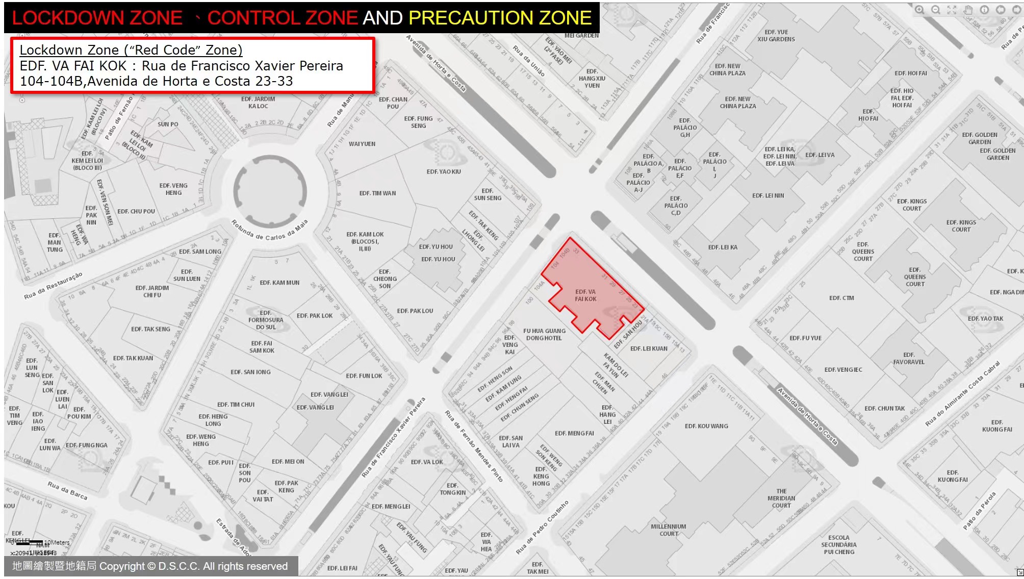 EDF. VA FAI KOK : Rua de Francisco Xavier Pereira 104-104B,Avenida de Horta e Costa 23-33 |