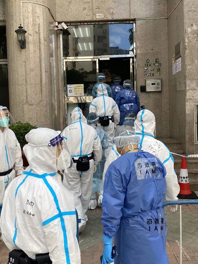 In the early hours of today (21 July), the Municipal Affairs Bureau (IAM) carried out the large-scale cleaning and disinfection of the public space in Edf. Kinglight Garden (Kam Yuen), and set up temporary nucleic acid sampling station and frontline coordination station in the lockdown and precautionary zone. For any enquiries about pandemic prevention measures, the public may call the enquiry hotline of the Novel Coronavirus Response and Coordination Centre at 28700800.